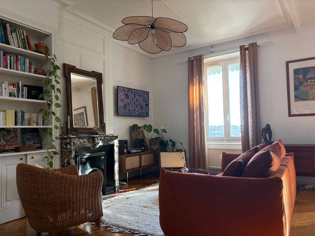 Apartamento con encanto con su chimenea decorativa y su parquet antiguo. Se encuentra en el Cours de Verdun Perrache a dos pasos de la estación de tren y de la Place Carnot que marca el extremo sur del centro de la ciudad. En encontrará muchas tiendas y restaurantes, incluida la famosa Brasserie Georges a 50 m. El barrio Confluence y la plaza Bellecour están a 10/15 minutos a pie. Metro, tranvías y autobuses se encuentran a 200 metros del apartamento. Entrada autónoma.