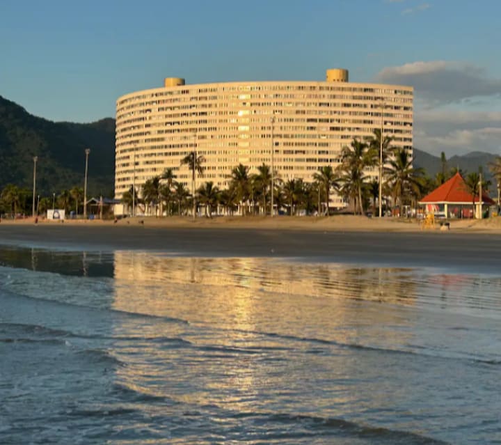 Edificio Redondo (Serra dos Itatins) tarjeta postal de la ciudad, situado en el centro de Peruíbe frente al mar (30 metros)... Junto al parque de atracciones, panaderías, mercados, farmacias, plaza central con mercadillo, bares y mucho más. ¡Increíble vista desde el 3º piso!