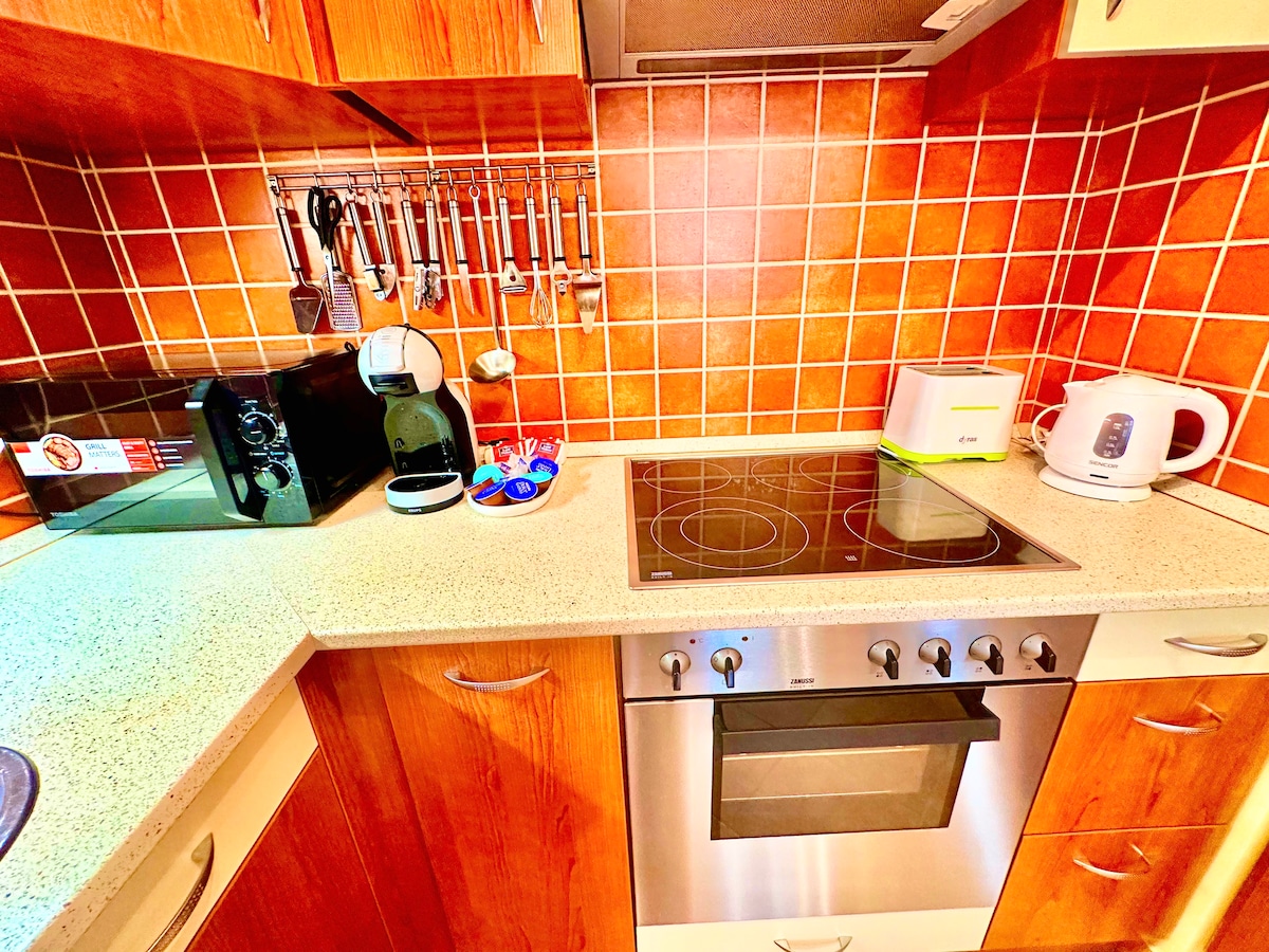 Nuestro hogar soleado con balcón está inspirado en nuestro viaje de surf. Aquí esperamos a los que vienen por un período más largo para que puedan experimentar la experiencia de un espacio amplio y tranquilo. Con su balcón orientado al suroeste, su luminoso salón es agradable tanto para descansar como para trabajar. La alcoba con colchón y almohada de memoria de primera calidad se puede oscurecer con una cortina para el salón. En la ventana hay un lector especial, una plataforma de descanso. Su baño de mosaico refleja los baños termales, su cocina las bodegas indonesias. ¡Descubre el mundo de una pareja de artistas surfistas! ¡Por favor, cuida los objetos!
