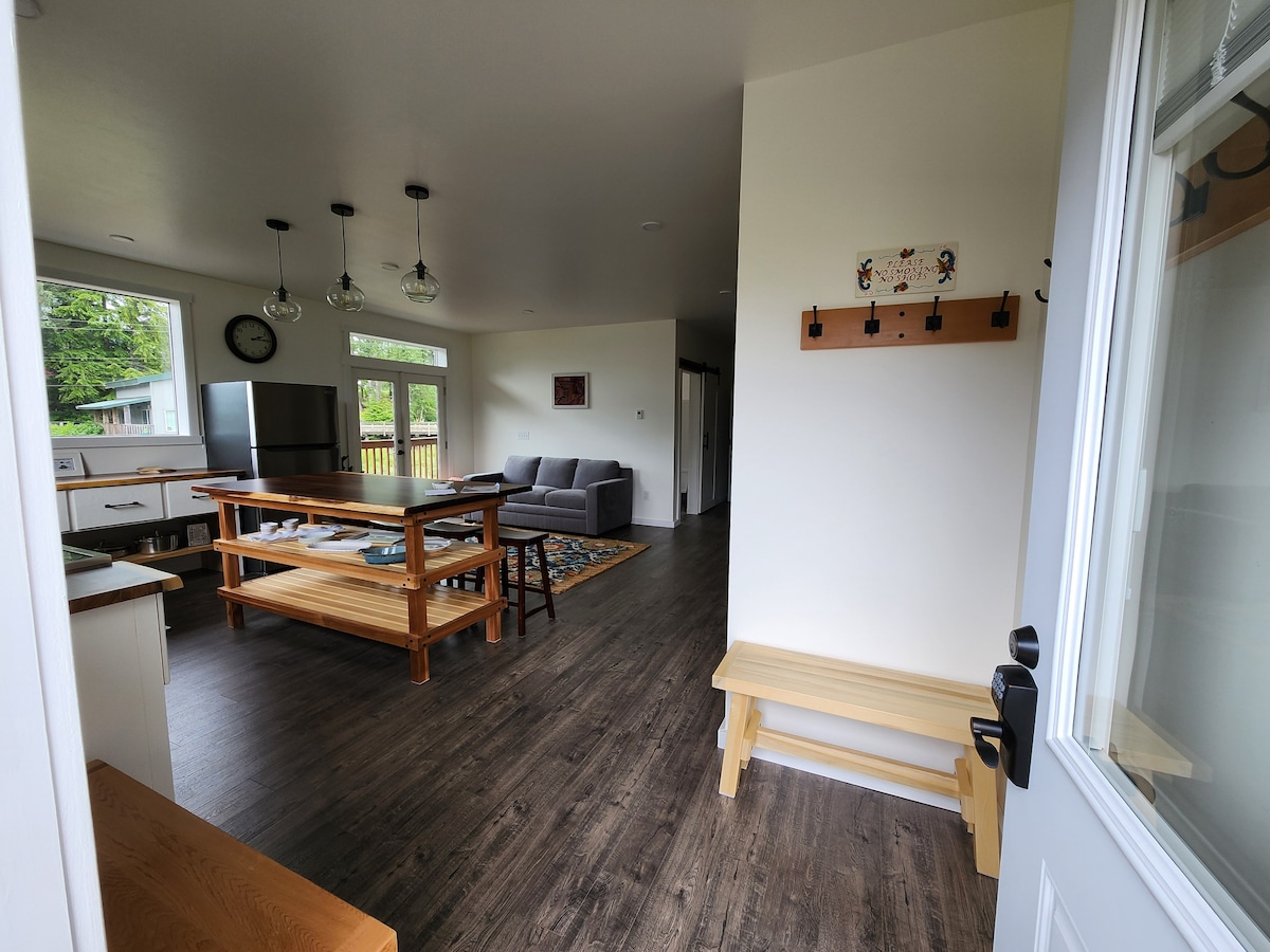 **From May-June 2026 there will be roofwork happening Monday-Thursday. There may be daytime noise / workers present during that period.** Driftwood Palace is a recently renovated 1 bedroom / 1 bathroom waterfront guest suite. A short 5 minute drive from downtown Petersburg, but feels a world away with water views from nearly every room. The West-facing covered porch is just feet from the Wrangell Narrows, and is great for watching sunsets, the tide come in, wildlife, and boats.