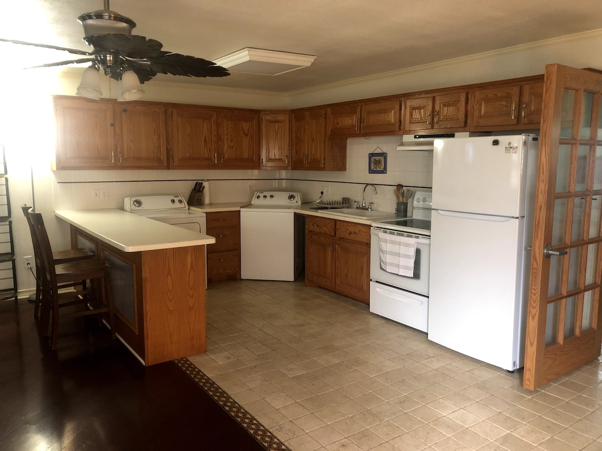 Ven y alójate en nuestro departamento anexo a la casa de campo. Esta antigua casa de campo fue remodelada recientemente, conservando parte de su encanto único y rústico. Nuestro alojamiento se encuentra en un lugar tranquilo, cerca del aeropuerto y del centro de Lubbock. El alojamiento tiene su propia entrada para que puedas ir y venir fácilmente con tu propio código. Disponemos de gran espacio para estacionar en la entrada circular y de vistas increíbles al amanecer. Todas las puertas comunicadas permanecen cerradas con llave durante toda tu estadía.