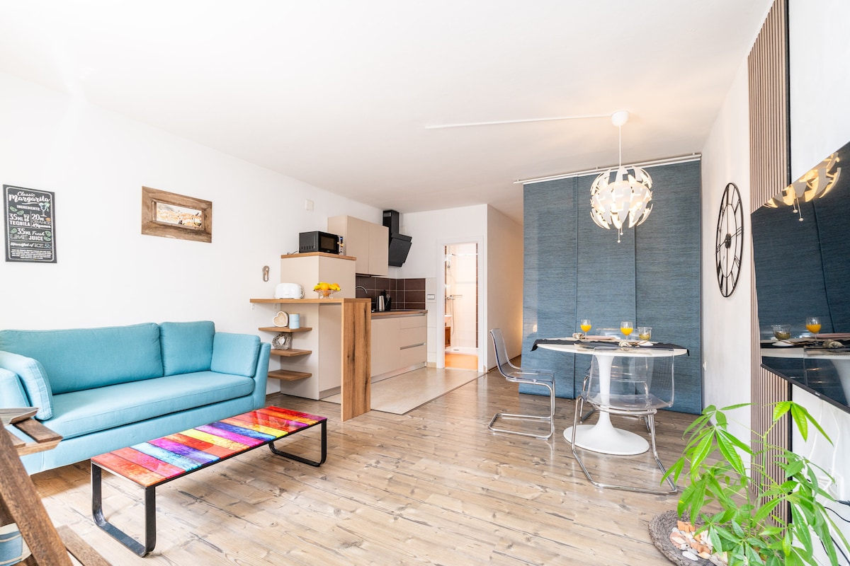 El apartamento SaRita tiene un fabuloso diseño interior conectado con terraza y un encantador jardín privado donde podrás disfrutar de una cena romántica o una copa de vino. Toda la propiedad está completamente cerrada, lo que proporciona una privacidad completa. El apartamento se encuentra en una zona tranquila, donde puedes escapar de las multitudes turísticas y estar en medio de la acción en el casco antiguo a 20 minutos en autobús. La tienda de comestibles, cafetería, panadería, cajero automático y estación de autobuses están a 2 minutos a pie, y la playa más cercana a 10 minutos.