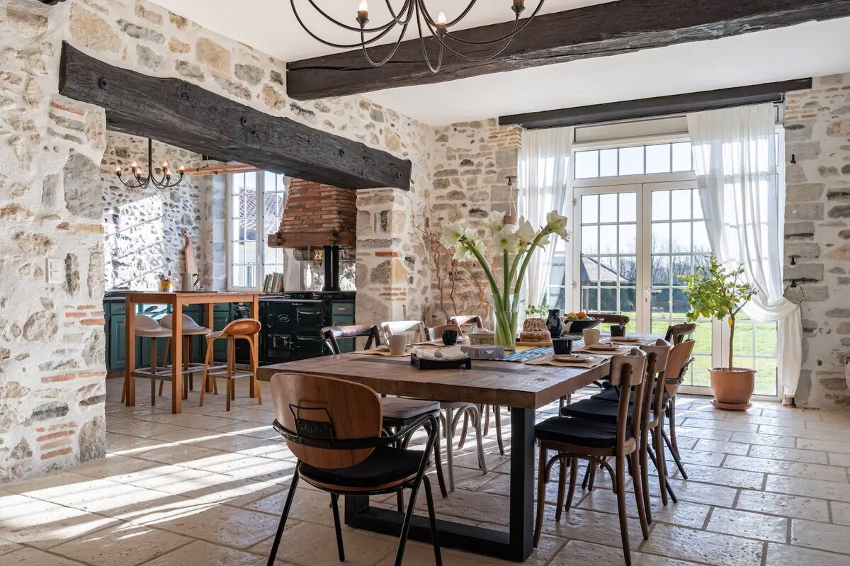 Antigua granja del siglo 18, en un bonito terreno con piscina climatizada, accesible de mayo a septiembre. La casa dispone de una gran sala de estar de más de 100 m2 y un espacio cubierto para disfrutar del exterior sin importar el clima. En la intersección de las Landas, el País Vasco y Bearne, la casa se encuentra a 25 minutos de las playas de las Landas. Ideal para conocer la zona. Las sábanas y toallas están incluidas. Se proporciona leña en invierno. Se solicita respeto al vecindario. No se puede hacer ruido en el exterior por la noche.