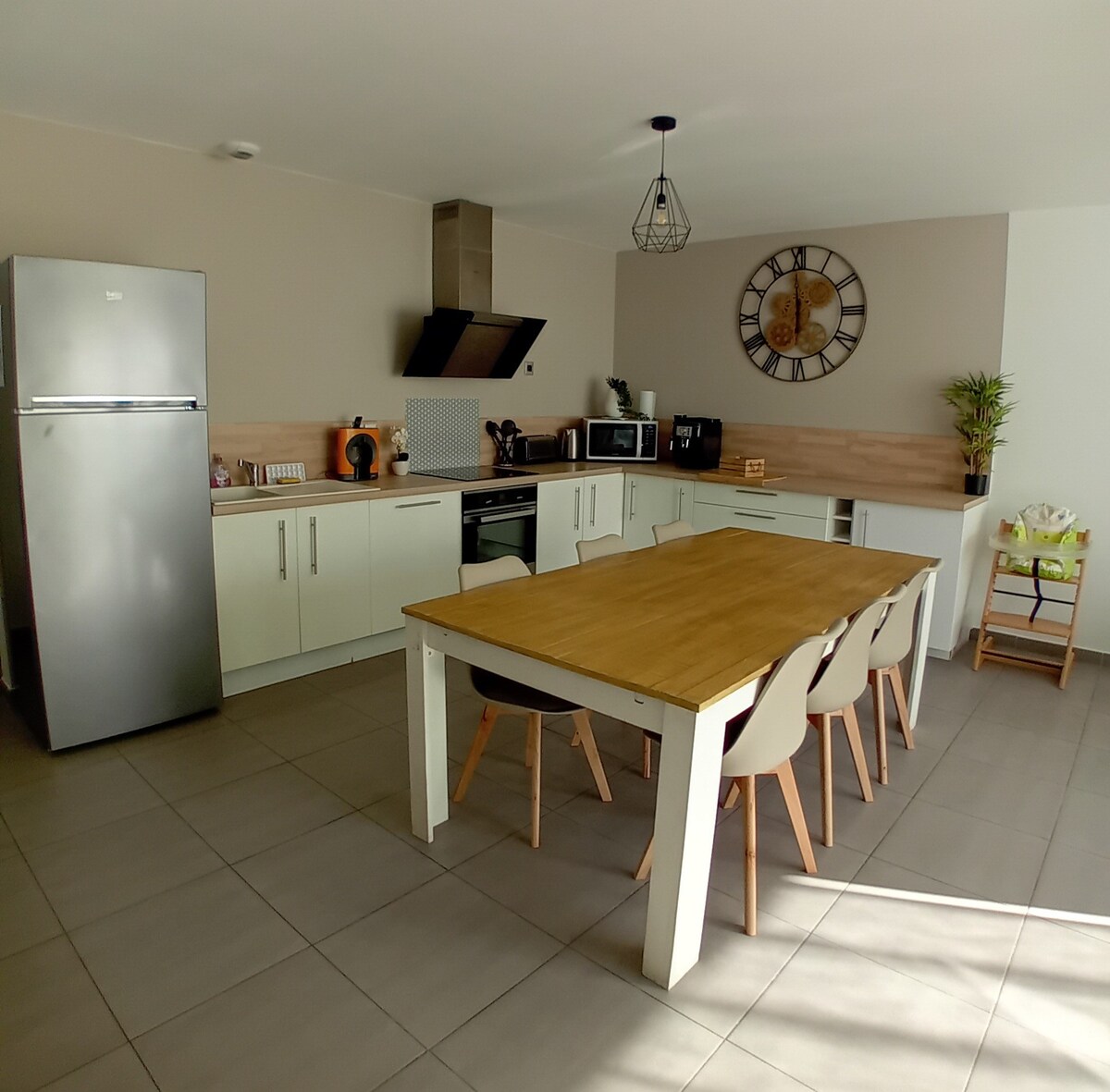 situada en una zona tranquila a 20 minutos de las playas, a 10 minutos de Perpiñán internet con fibra en wifi Netflix sala de estar con aire acondicionado 3 habitaciones, 2 de ellas con cama de matrimonio de 140 x 190/200 y 1 con literas cocina totalmente equipada estancias de 1 o 2 noches: - sábanas, fundas y toallas no incluidas - posibilidad de optar por un paquete de 25 € que incluye sábanas y toallas Piscina con tumbonas del 01/06 al 15/09 zona de comedor exterior con barbacoa muebles de jardín