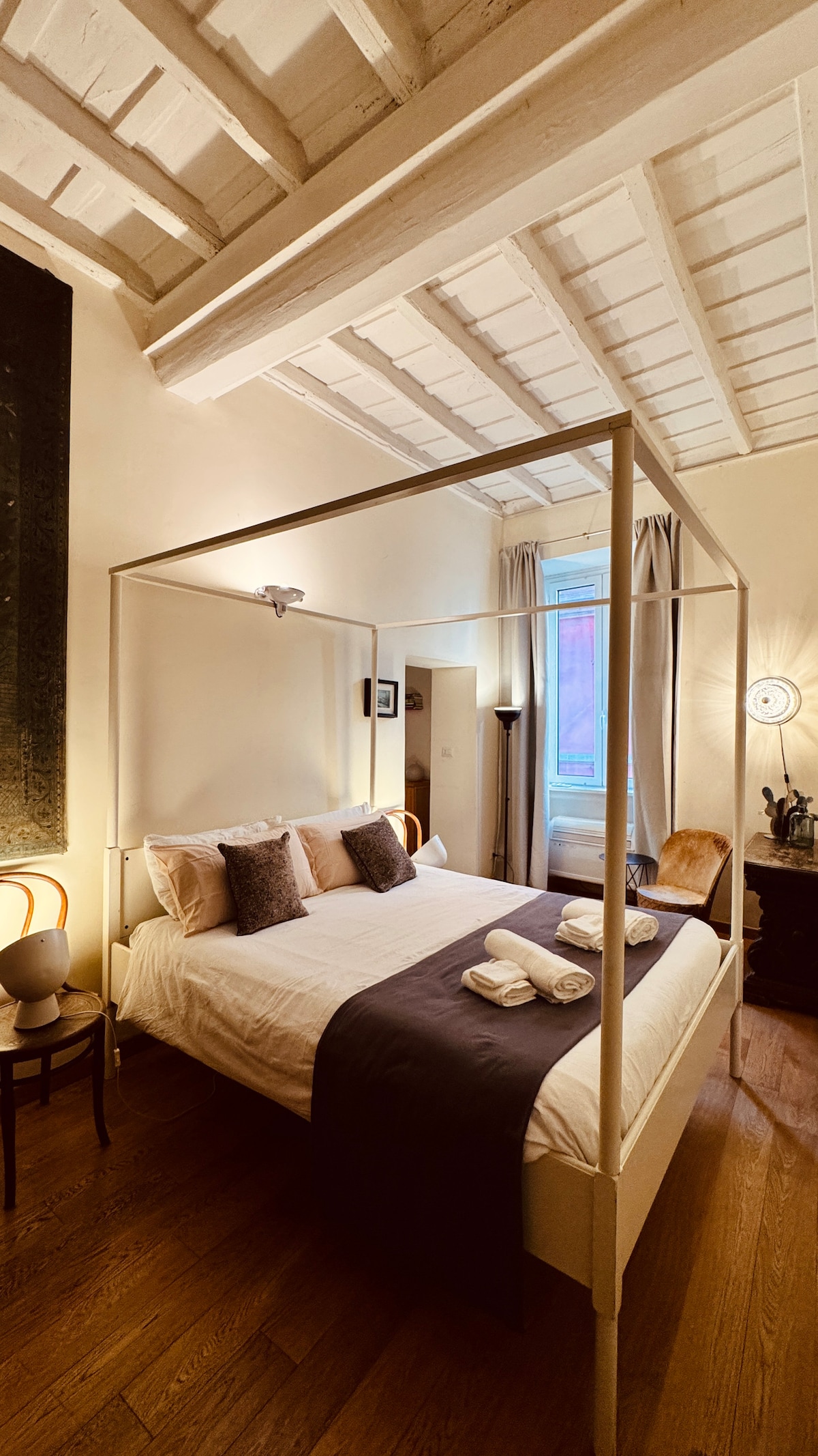 Precioso y confortable estudio situado en el centro histórico de Roma, en un edificio de época a pocos metros del Panteón. Completamente reformado, se encuentra en una cuarta planta sin ascensor. Decorado con estilo, se caracteriza por su espléndido techo con vigas de madera, suelos de parqué y chimenea de mármol. Desde el pequeño balcón se puede disfrutar de la vista del característico callejón y de los tejados de Roma. La ubicación es estratégica e ideal para visitar a pie las maravillas de Roma.