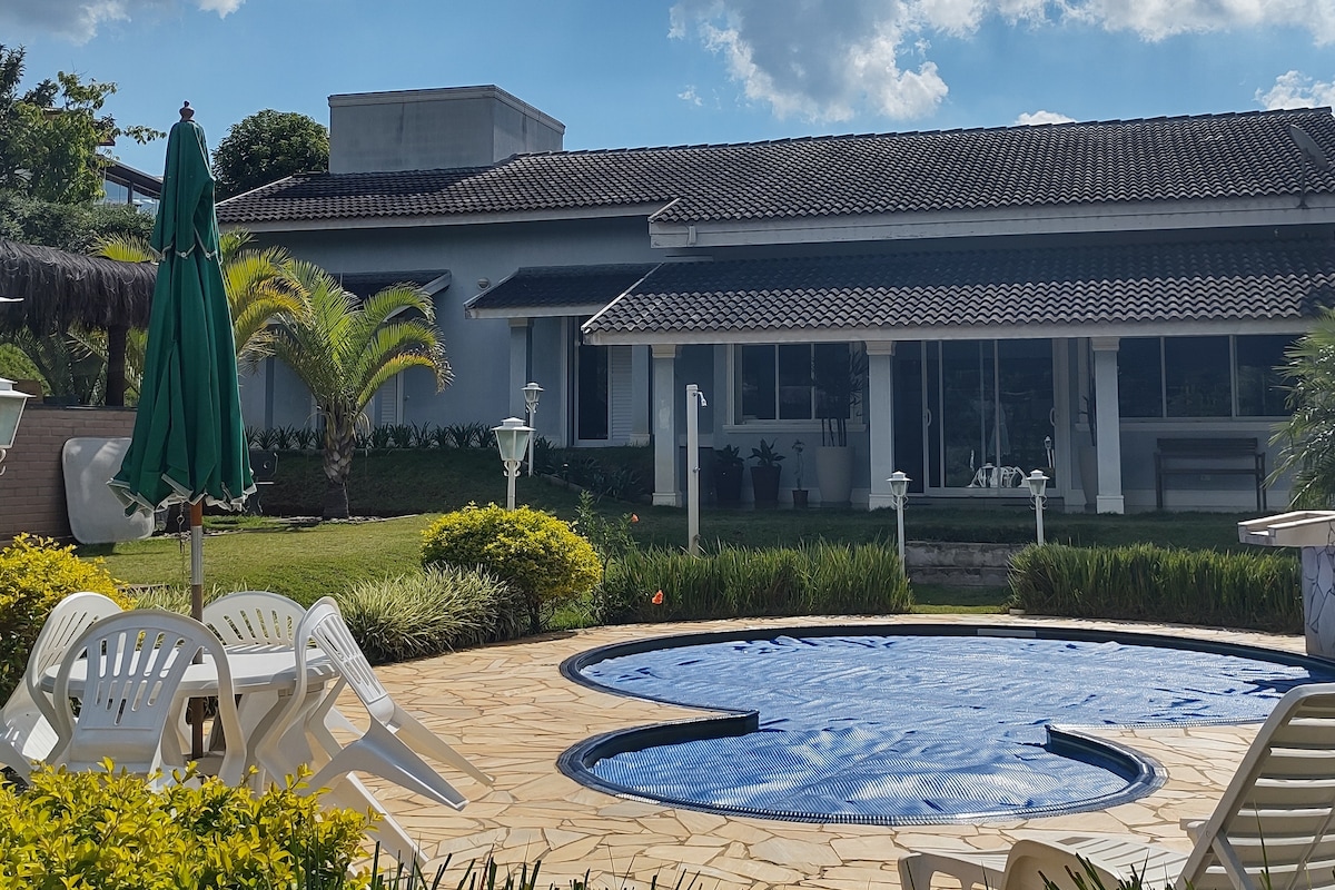 ✅️Paga tu viaje en hasta 6 cuotas SIN intereses Casa de Campo ILUMINADA, espaciosa y cómoda CONDOMINIO CERRADO con vigilancia las 24 horas. 5 DORMITORIOS, 1 en suite con agua 5 BAÑOS + BAÑOS Zona con PARRILLA, horno para pizzas, estufa de leña y grifo de cerveza Habitación con CHIMENEA Dejamos el FUEGO encendido. PISCINA – 10 m x 4 m, sin calefacción Gramado c/ GOLZINHO INTERNET de fibra óptica (400 MB) TIENDAS CERCANAS Condominio con MINIMERCADO las 24 horas Condominio con SENDERO y LAGO ACCESO por carretera pavimentada SE ADMITEN MASCOTAS (casa vallada)