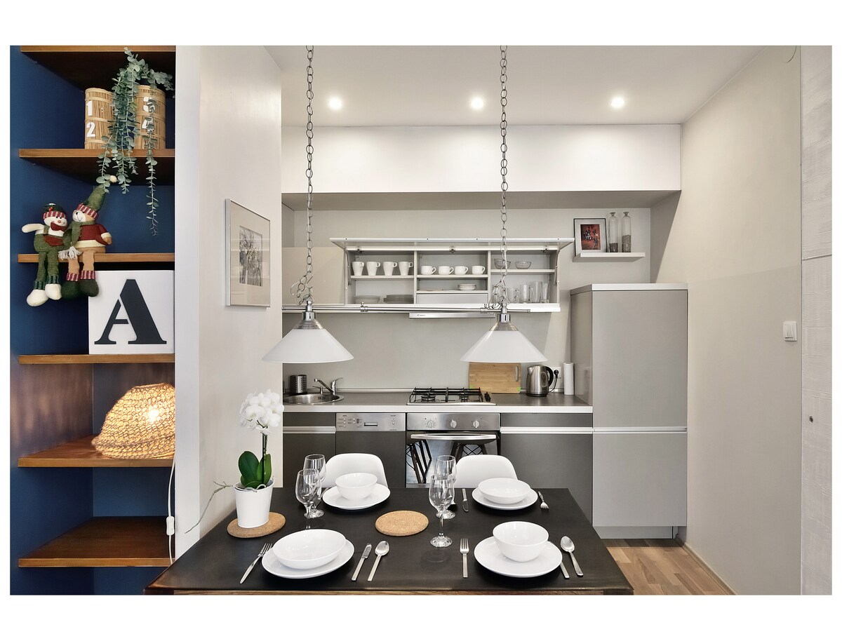 Un lugar elegante para alojarse en pleno centro. El apartamento consta de un salón con cocina, dos dormitorios, un vestidor y un baño. El apartamento está en el cuarto piso, el edificio no tiene ascensor. Un lugar elegante para alojarse justo en el centro. El apartamento consta de un salón con cocina, dos dormitorios, un armario y un baño. El apartamento está situado en el cuarto piso, el edificio no tiene ascensor.