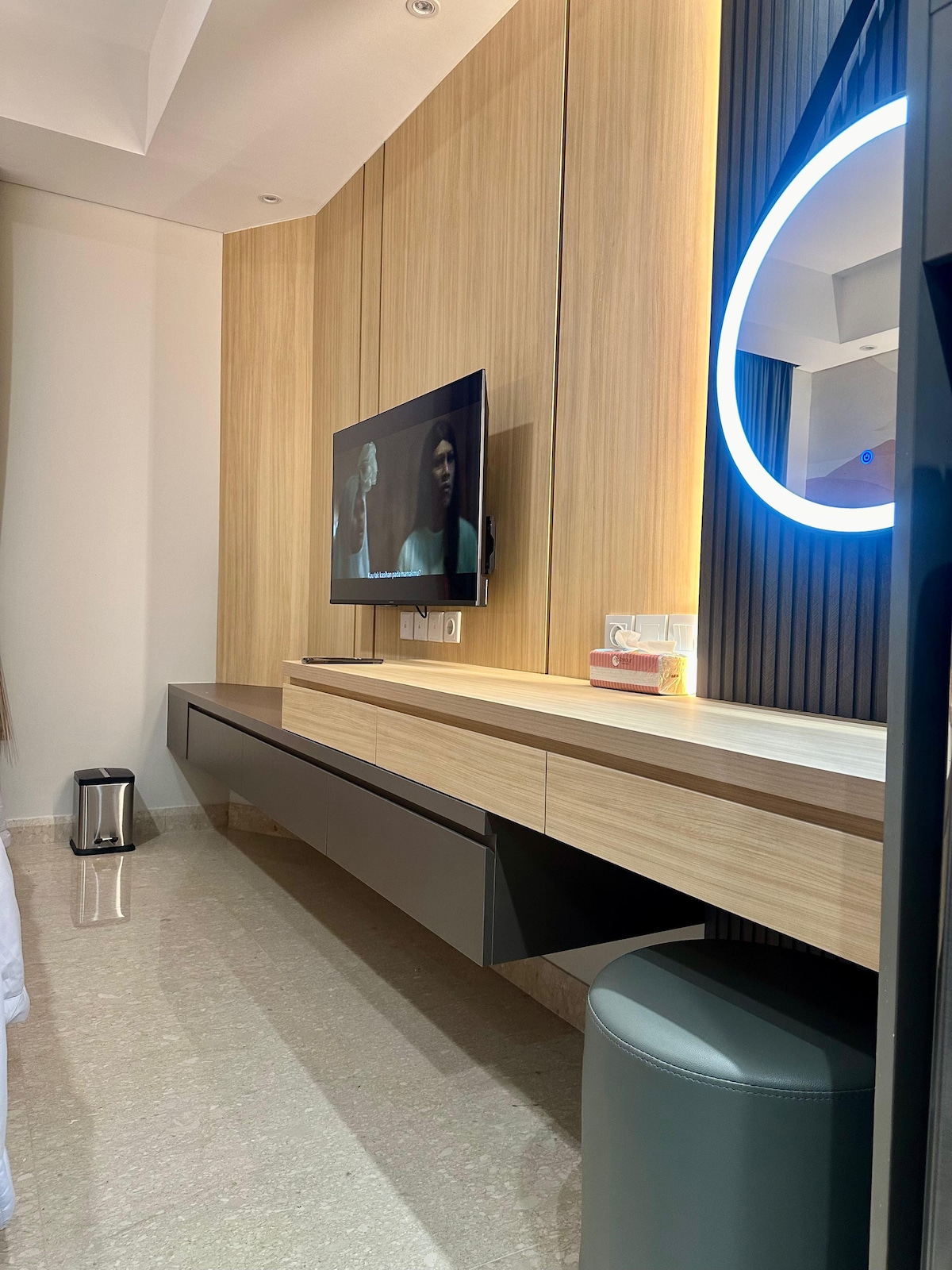 Despiértate con luz natural y vistas serenas en este espacio luminoso y acogedor con un toque moderno: nuestra estadía más asequible en Gold Coast PIK. Diseñada con un ambiente de hotel boutique, la habitación cuenta con tonos cálidos de madera. 📍 Ubicado dentro del complejo hotelero Oakwood, estarás justo en el corazón de la zona más vibrante de Yakarta. Los centros comerciales, las cafeterías, los mercados y los lugares de estilo de vida están a poca distancia a pie, lo que hace que tu estancia sea fácil y cómoda.