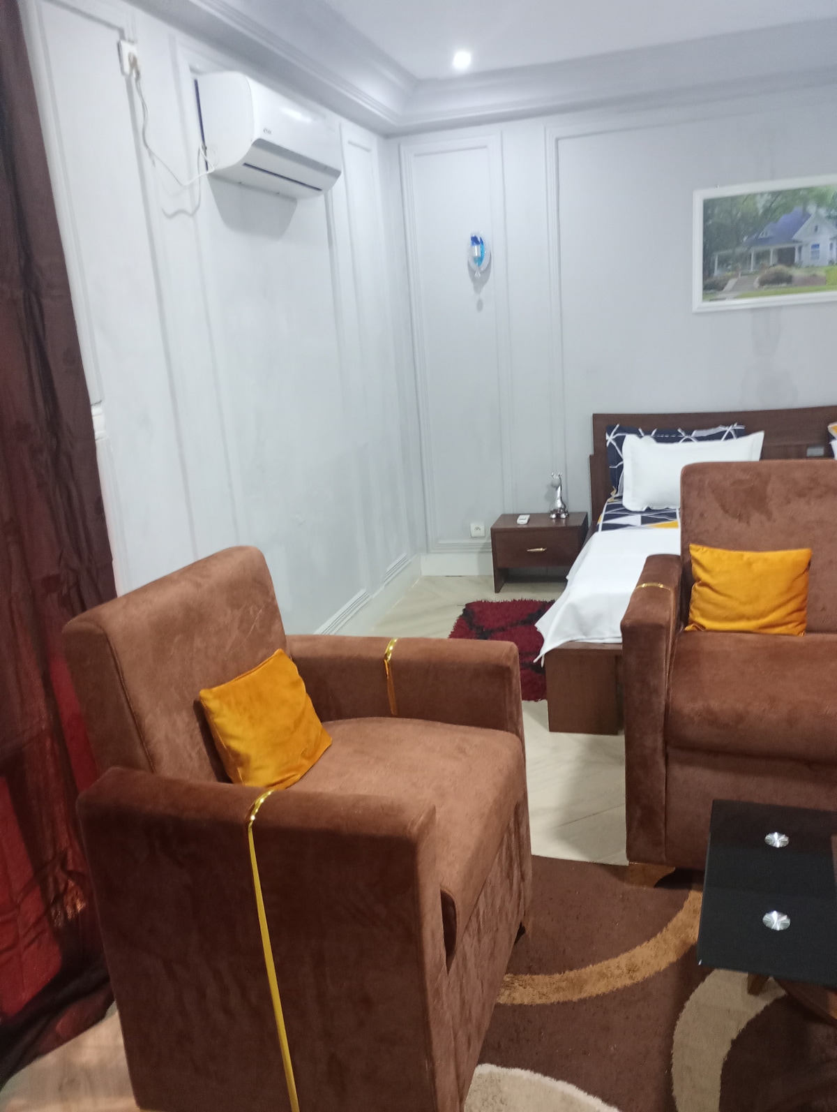 Salón+1 dormitorio+2 baños Alojamiento de fácil acceso,moderno y muy bien equipado,cómodo,limpio,funcional... Entrada independiente. Situado en una zona residencial, segura y de fácil acceso. Cerca de los servicios (Auchan, transportes, tienda de comestibles, panadería, farmacia...) Estación principal de Dakar a 1,9 km y autopista de peaje a menos de 5 minutos Equipamiento: Aire acondicionado TV por cable-Canal Wifi Orange Nevera-congelador Cocina Microondas Cuarto de baño con agua caliente .....