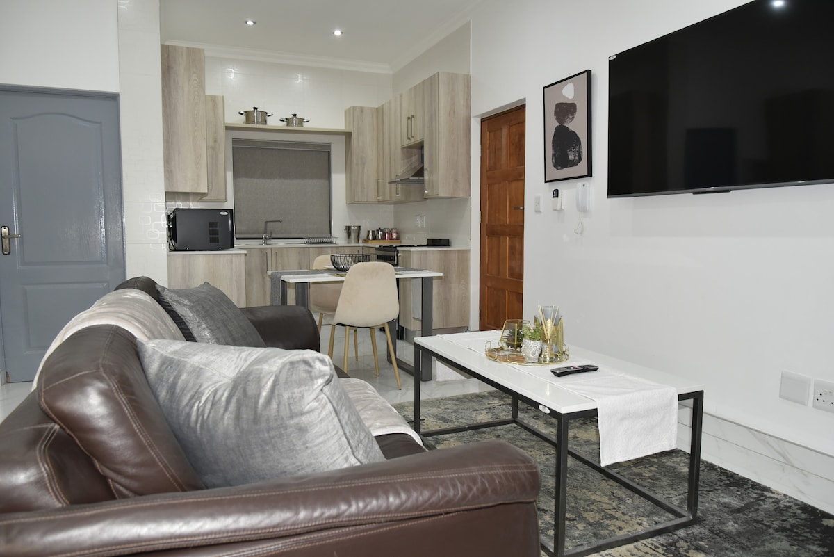 Welcome to Green Haven Cottage, your tranquil retreat nestled in the heart of Johannesburg North. This charming open-plan cottage offers a seamless blend of comfort and elegance, perfect for a relaxing getaway or a productive business trip.. Step inside to discover a thoughtfully designed space featuring a cozy living area, a well-appointed kitchen, and a comfortable sleeping area — all harmoniously integrated into one inviting environment.