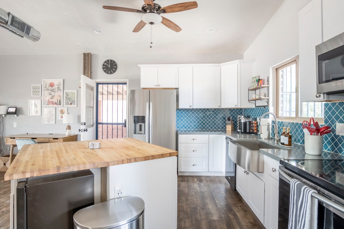 Te damos la bienvenida a Casa Clemente ✨ Una joya histórica de 3 dormitorios en el centro de Tucson donde el encanto del viejo mundo se encuentra con la comodidad moderna. Relájate en la acogedora sala de estar, en el rincón de lectura o en la ducha con efecto de lluvia estilo spa. La cocina, con sus vigas de 75 años, está totalmente equipada con una barra de café. Tres amplios dormitorios garantizan comodidad para familias o grupos. Sal a tu oasis privado con una barbacoa, chimenea y cenador. Todo a pocos minutos del centro de la ciudad, Sabino Canyon, U of A, Reid Park Zoo y el Gem Show.