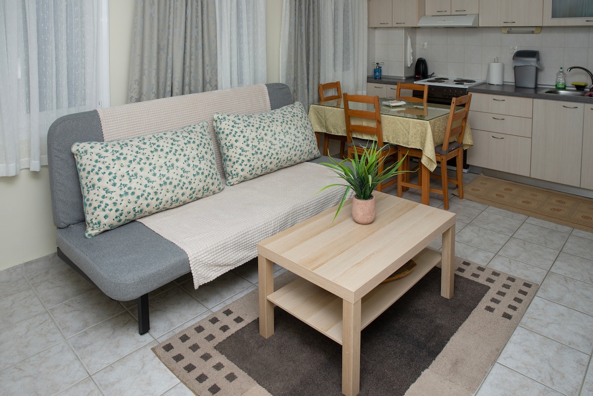Ήσυχος, ολοκαίνουριος και κομψός χώρος 30τ.μ. ,1° ορόφου με ιδιωτικη εισοδο και δωρεάν ιδιώτικο parking . Μόλις 7' απο το κέντρο των Ιωαννίνων με αυτοκίνητο. Εναλλακτικά στα 100μέτρα υπάρχει στάση λεωφορείου. Διαθέτει κουζίνα, ψυγείο, μηχανή espresso, φρυγανιέρα, βραστήρας. Επίσης διαθέτει wifi, netflix, κλιματισμό, σεσουάρ μαλλιών, σίδερο. Στα 300μέτρα υπάρχει φούρνος, φαρμακείο, mini market. Το διαμέρισμα μπορεί να φιλοξενήσει άνετα δυο ενήλικες ή ενα ζευγάρι με ένα μικρό παιδάκι.!