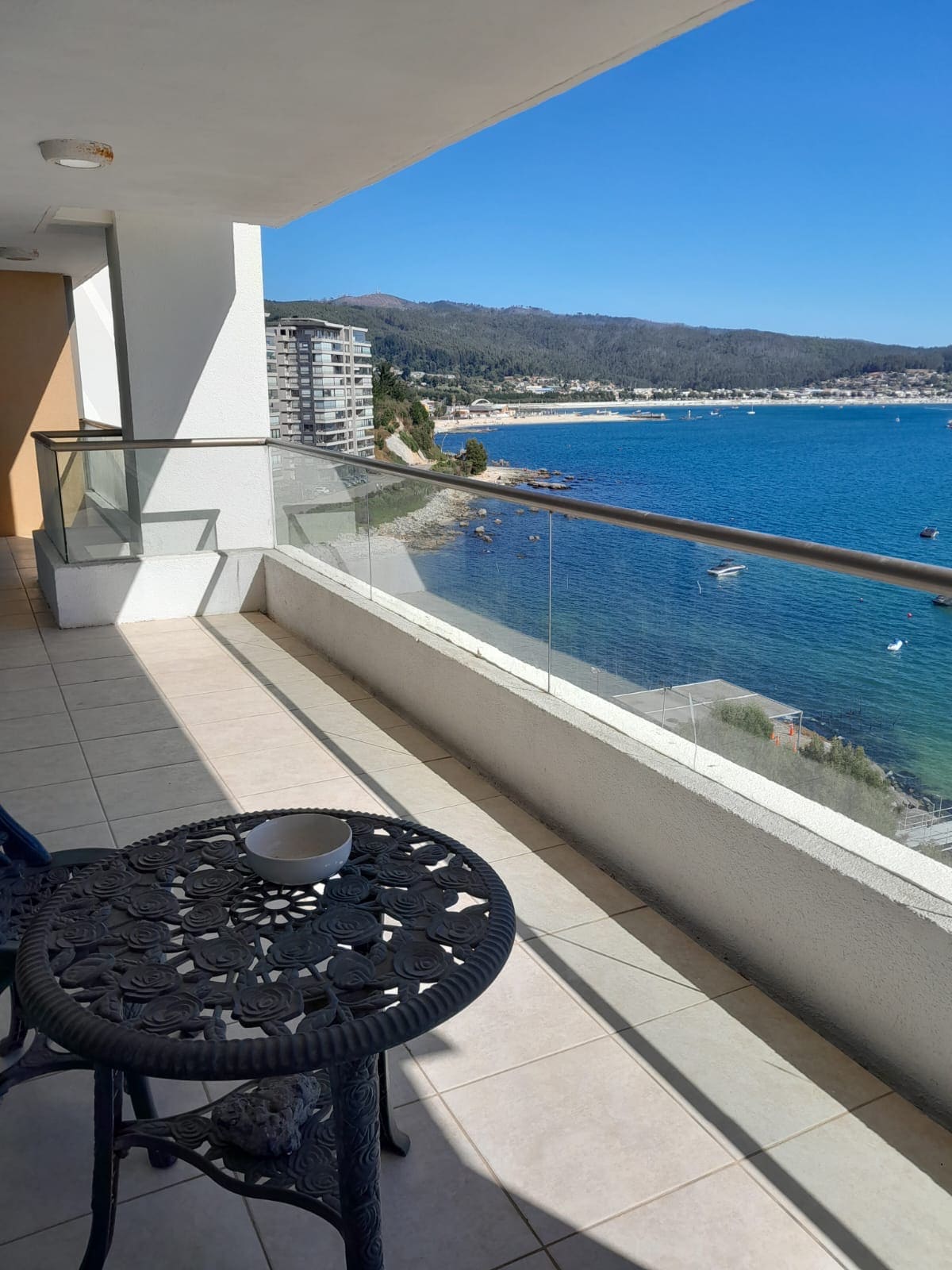 Departamento amplio con excelente distribución de espacios, vista al mar, al rompeolas y a la bahía de Tomé. Terraza para disfrutar de un buen café en la mañana al sonido del mar o con un rico trago al cálido atardecer. Cama matrimonial y dos camas de plaza. TV 32" con Cable e internet WIFI de alta velocidad. Equipado con todo lo necesario para que sea una buena estadía. Estacionamiento privado al interior del condominio.