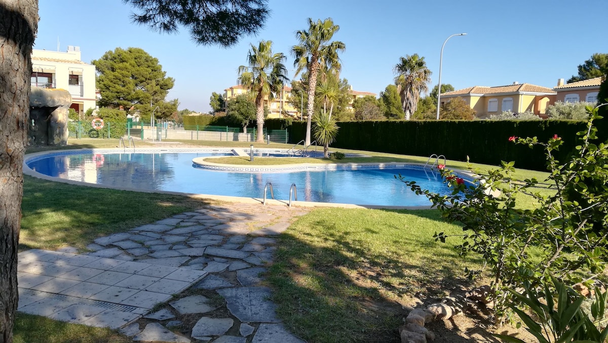Aviso!!! SE HACE REGISTRO DOCUMENTAL DE TODOS HUÉSPEDES ANTES DE LA LLEGADA. A TRAVÉS de CHEKIN (OBLIGATORIO POR LA LEY) Casa adosada, a 30 metros de la playa. La playa es Plana y de arena, no tiene bajada de rockasTiene jardín, piscina privada. La casa dispone de parking privado y aparcamientos libres para 3 coches. Dos terrazas amplias. La PISCINA dispone solo desde junio hasta 15 de SEPTIEMBRE .