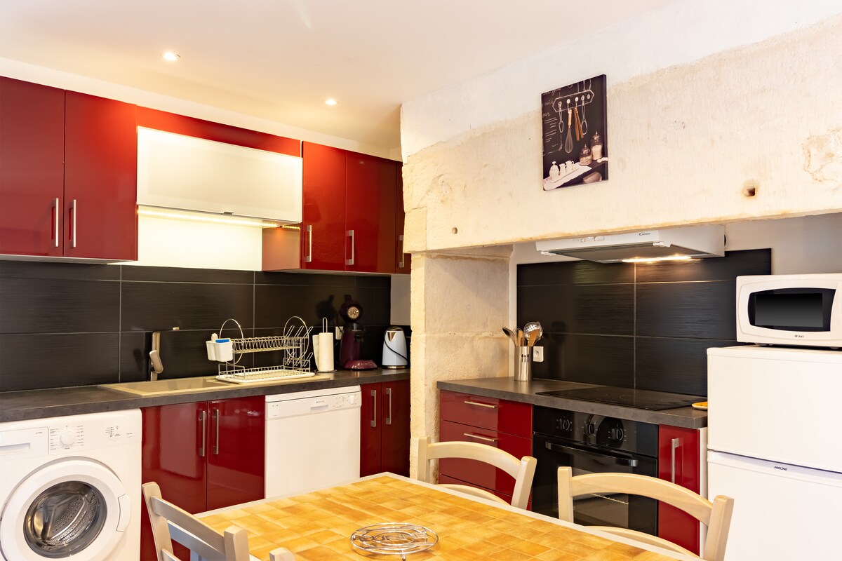 En el corazón del Périgord Noir, cerca de muchos lugares de interés, disfrute de un apartamento de 120 m2 en una gran casa Périgourdine con carácter de principios del siglo XIX. Con una ubicación ideal en el centro del pueblo de Roque-Gageac, al pie de los acantilados y a orillas del Dordoña, podrá disfrutar de unas vistas agradables. El alojamiento consta de una gran cocina equipada, una gran sala de estar con chimenea, tres dormitorios, dos baños, dos aseos. El apartamento tiene acceso privado.