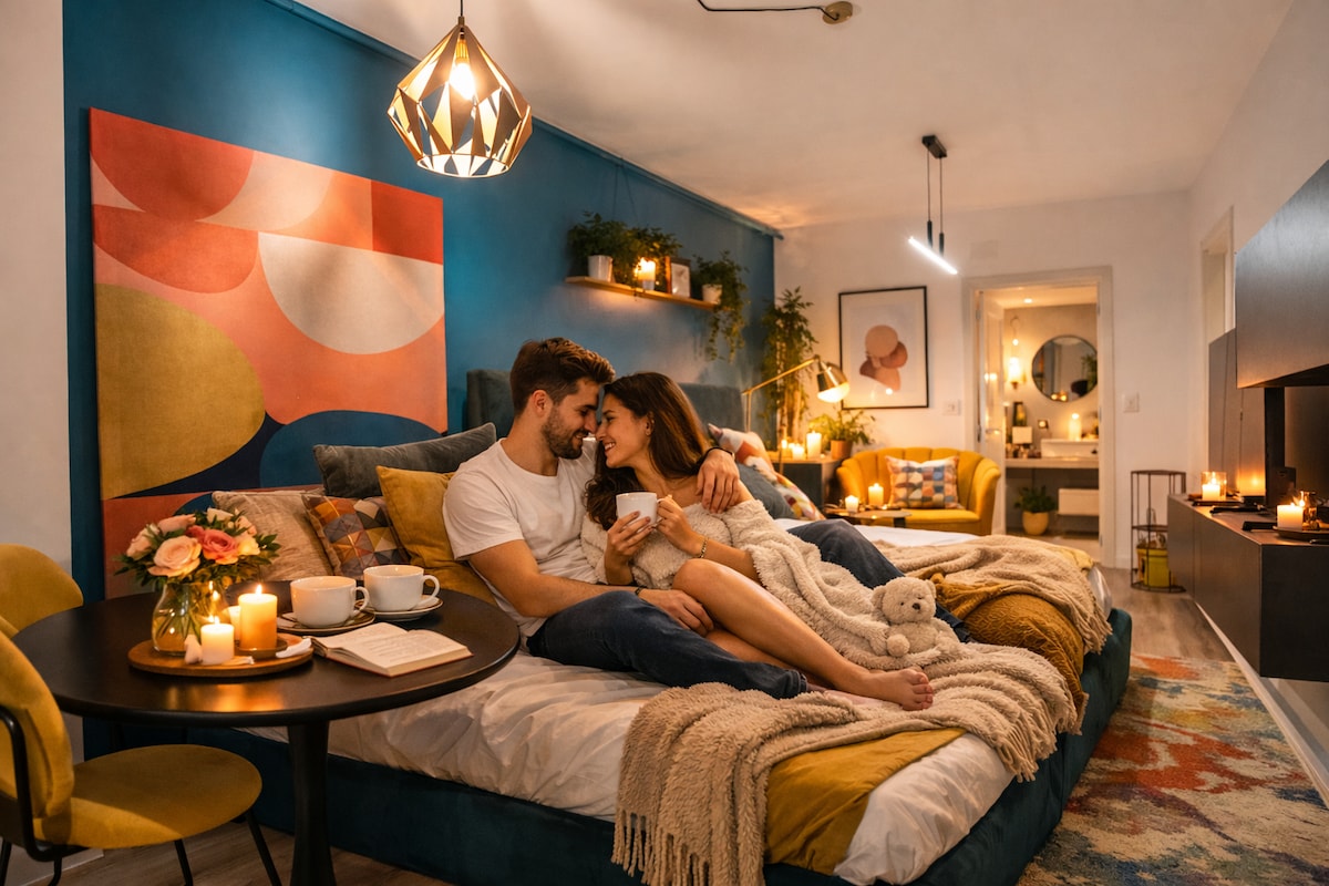 Estudio moderno y luminoso en el complejo Cortina North, ubicado en el norte de Bucarest. Ofrece cama tamaño king, TV inteligente con Netflix, conexión Wi-Fi rápida, zona de comedor y cocina equipada. Diseño elegante, baño moderno y llegada flexible. Cerca de Băneasa, Pipera y el aeropuerto, en un complejo nuevo y seguro. Ideal para parejas, viajes de negocios o escapadas urbanas. El acceso a Cortina Wellness está disponible por una tarifa diaria.