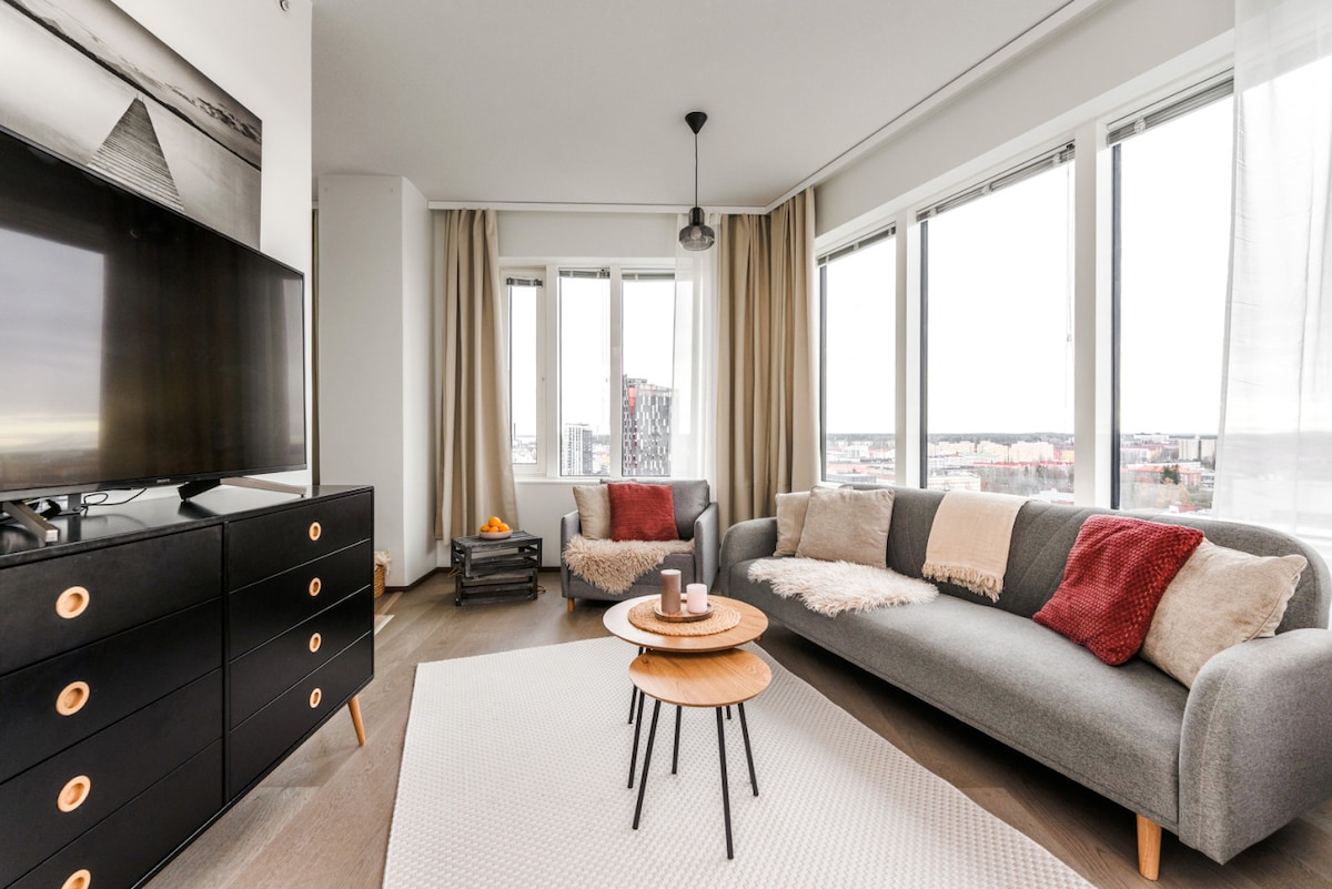 Parvekkeellinen ilmastoitu yksiö Nokia Areenalla