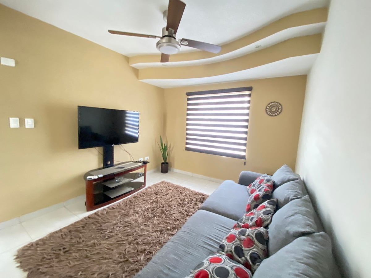 ¡Bienvenidos a nuestro hogar en Chihuahua! Disfruta de dos recámaras amplias con camas grandes y baños privados uno de ellos con jacuzzi. Ideal para familias, el alojamiento cuenta con sala, comedor, cocina equipada (con microondas, tostador, cafetera y vajilla completa), lavadora, secadora y cable de TV. Excelente ubicación, cerca de comercios, parques, cines y áreas recreativas. ¡Ven y vive una experiencia increíble con nosotros! ¡Te esperamos!
