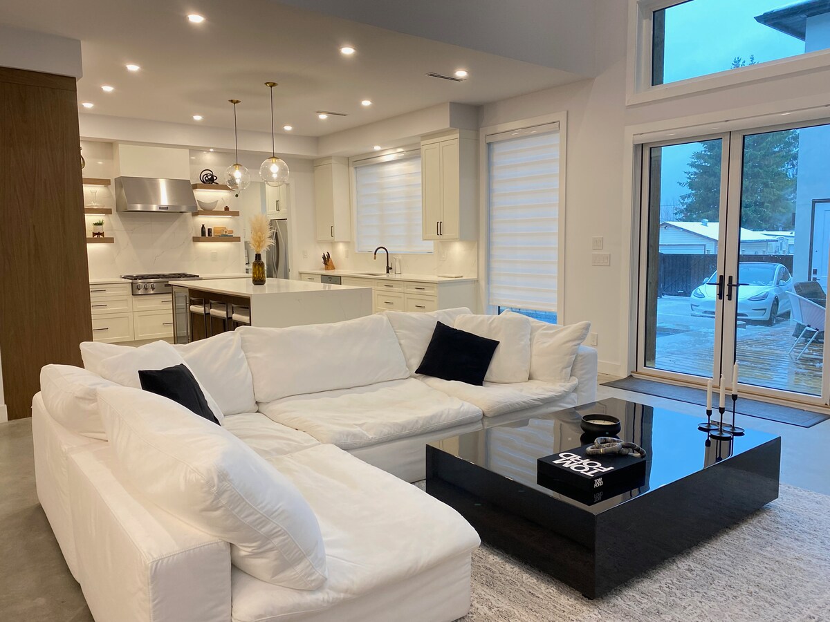 Guests love our top 5% home: sparkling clean, beautifully designed, and incredibly comfortable. Boutique-style suite with high ceilings, a luxurious king bed, and comfort better than a hotel stay. Enjoy a sunny living room, in-suite laundry, 1G Wi-Fi, 52" smart TV with Netflix, free coffee & tea, private entry, and free parking. Thermostat heating and naturally cool in summer. Walk to transit, parks, and trails; a short drive to shopping. Perfect for couples, families, solo, or business stays.