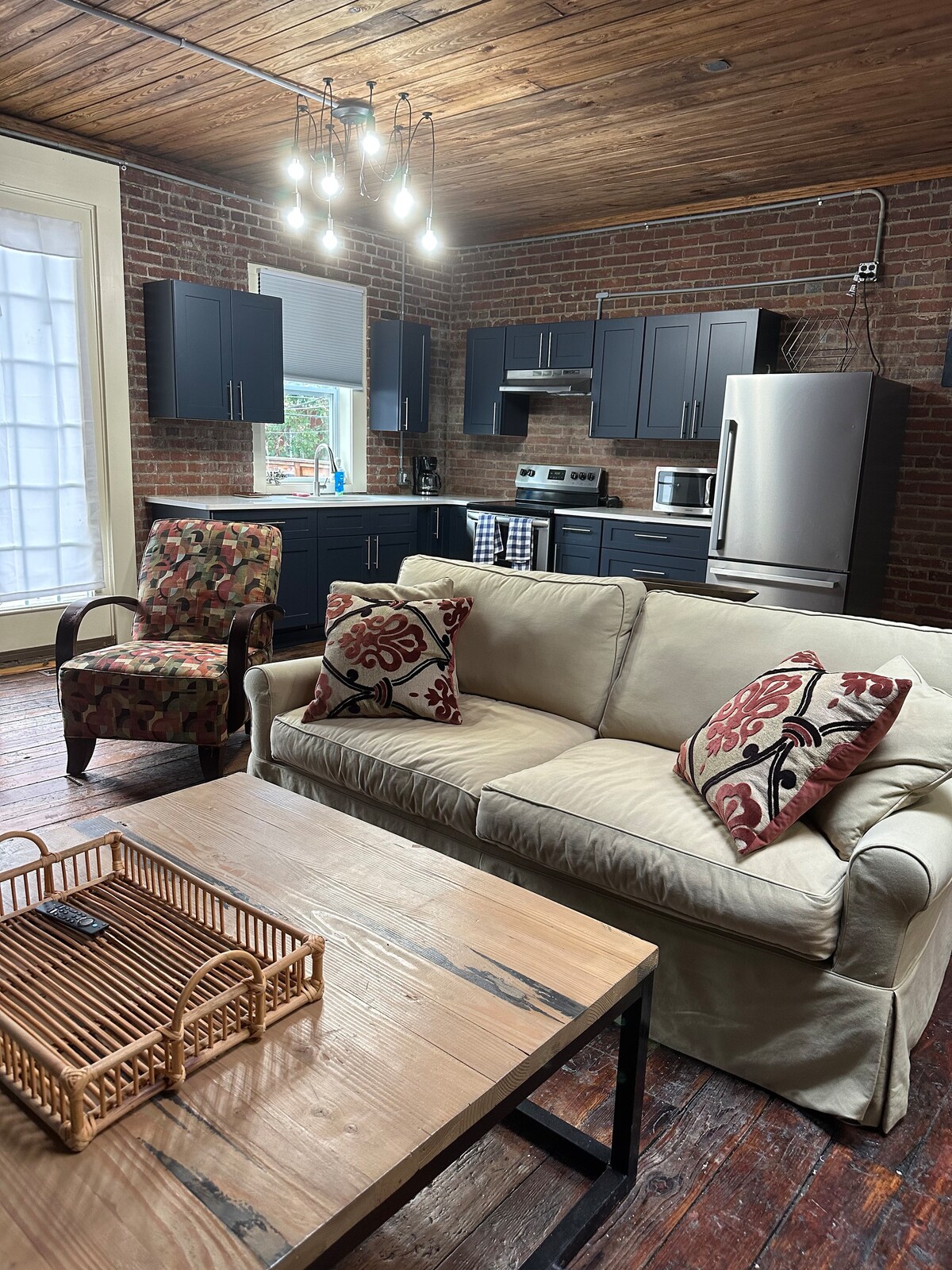 Loft industrial en el centro de Pittsboro: ¡camina a todas partes o simplemente relájate en la espaciosa terraza y disfruta de la música del City Tap o Havoc! Estarás en el corazón de todo con fácil acceso a las tiendas, panaderías, tiendas de vinos, restaurantes, cervecerías y otras atracciones de Pittsboro. El loft está amueblado cómodamente con una cama tamaño king Murphy, un sofá cama extraíble y una ducha húmeda con suelos radiantes, toallero con calefacción y una cocina bien surtida. ¡Ven a disfrutar de la elegancia industrial con comodidad!