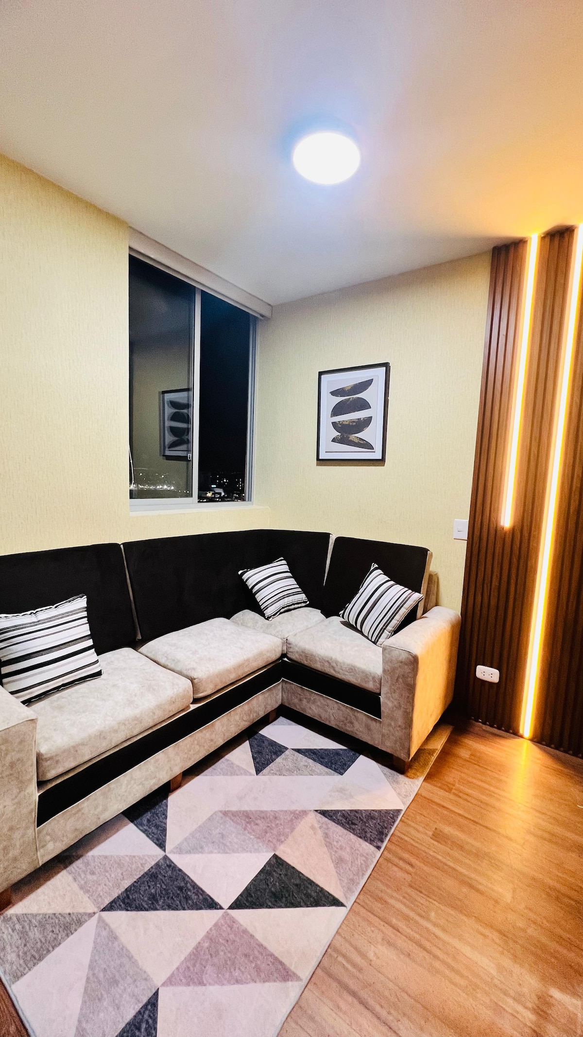 Disfruta de la sencillez de este alojamiento pet friendly ubicado en Condominio Céntrika. Cuenta con internet fibra óptica, 2 Smart TV con Netflix (sala y habitación principal), lavadora, sala/comedor, cocina equipada, 2 habitaciones, área de trabajo, 1 baño e intercomunicador para acceso de visitantes. Condominio cuenta con seguridad 24/7 y está ubicado a unas cuadras del CC Real Plaza, a 1 km de Transportes EPPO y a 3.5 km de Plaza de Armas.