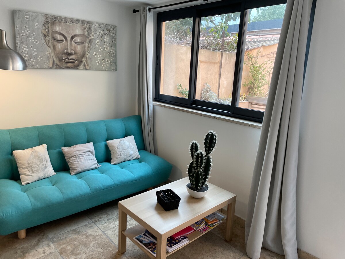 Estudio para 4 personas. ¡Con los pies en el agua! Ideal para 2 adultos y 2 niños. Acogedor, luminoso, estacionamiento privado, en una calle tranquila y cerca de todo!! 1 cama de 140 y 1 BZ en 160 Venga a relajarse al Brusc, pequeño pedazo de paraíso, donde podrá variar las actividades. Situado a 1 min de una playa de arena fina, calas y restaurantes. Haz las maletas, estoy deseando que descubra mi región.