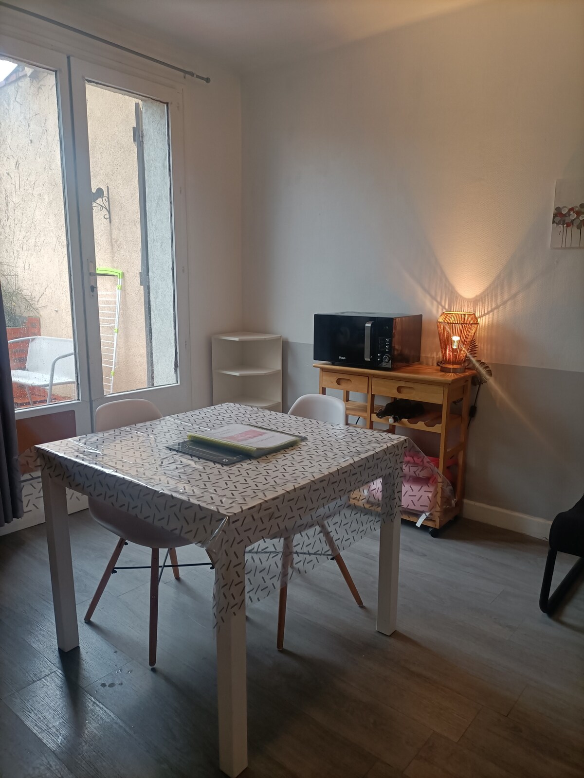Appt T2 antiguo y funcional en el centro de la ciudad. Contexto sencillo. Prohibido fumar en la vivienda. Composición: - una sala de estar cocina; cocina equipada, horno microondas y minihorno, nevera pequeña - Una habitación grande. 1 cama de 140 y otra de 90. No se proporcionan sábanas. - Un baño independiente y un aseo separado. - Televisión y acceso a internet de fibra incluidos. - Terraza -Gran vestíbulo de entrada privado. Escalera presente. Todos los detalles están en «mi alojamiento»
