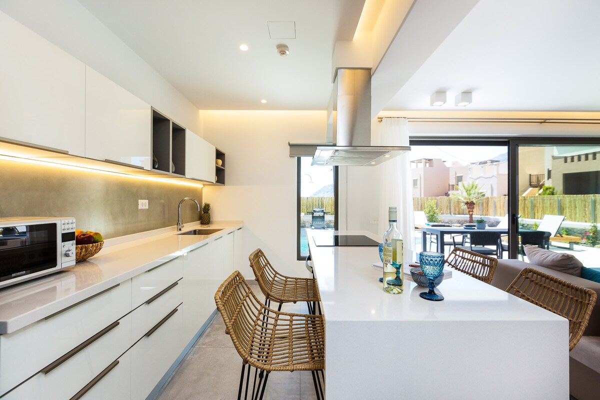 Villa moderna con piscina, vista al mar y a poca distancia de la playa