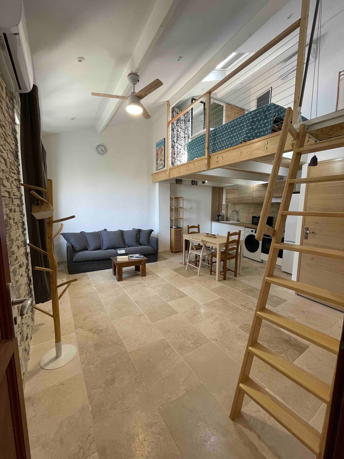 Studio t1/t2 situé en plein cœur du village d'Allauch. Profitez d'un logement refait à neuf avec de beaux volumes et tout équipé dans une petite copropriété paisible. L'accès se fait via une ruelle piétonne pavée qui amène à un escalier extérieur. Au premier niveau, vous trouverez une belle pièce à vivre de 25m2 avec salon, salle à manger, cuisine et WC séparé. Grande fenêtre avec vue dégagée. Le coin nuit et la salle d'eau sont accessibles par une échelle meunière.