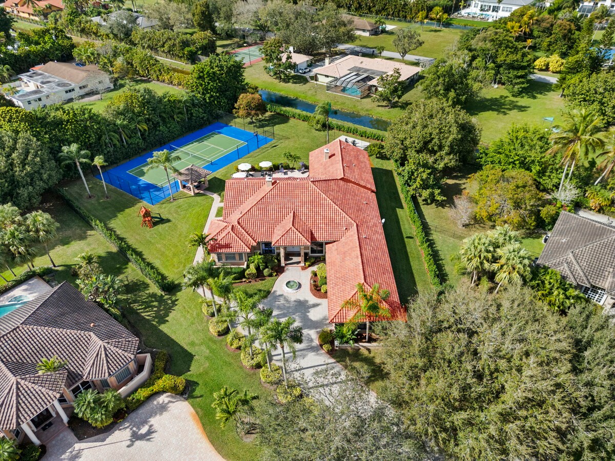¡Saluda a esta hermosa casa de Florida! Este espacio de lujo incluye 2 salas de estar abiertas, una cocina moderna con asientos en la parte superior del bar, oficina, 3 amplios dormitorios, 4 baños completos y una casa con piscina con sauna. Los huéspedes también disfrutarán de un oasis privado en el patio trasero que contiene piscina, spa climatizado, tumbonas, chimenea, comedor, cocina al aire libre con fregadero, mini nevera, parrilla para barbacoa y una cancha multi deportiva de tamaño completo y campo de fútbol.