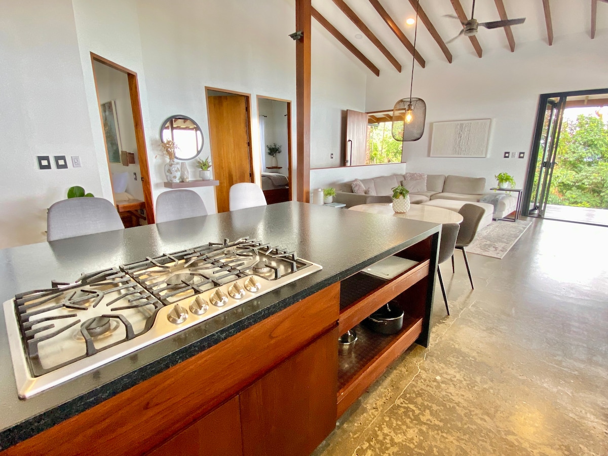 Casita Dominical con vistas al mar, terraza, cocina