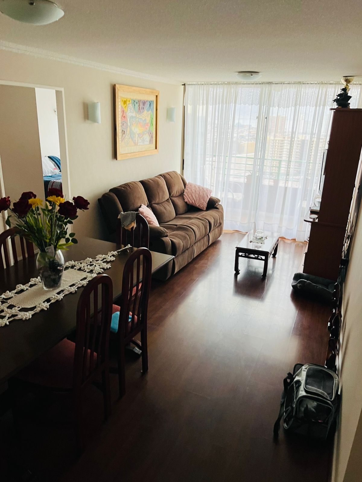Disfruta de una increíble experiencia en nuestro departamento ubicado en el piso 23 en primera línea frente al mar, con vistas increíbles y cercano a puntos claves de la ciudad (Supermercados-centro comercial- bencineras-Restaurantes) El departamento se encuentra equipado y amoblado completamente para que tengas una experiencia más cómoda, para un máximo de 4 personas con cama matrimonial y sofá cama, una terraza que te permitirá disfrutar y compartir mientras ves un lindo atardecer.