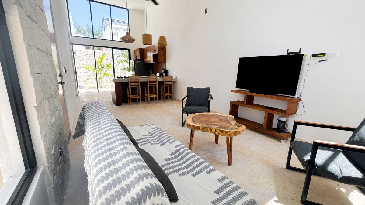 Relájate en este espacio de tranquilidad y elegancia, diseñado para darte una experiencia de armonía y paz que te hará sentir como en casa. Casa creada para que descanses y te olvides de la vida cotidiana, y disfrutes plenamente de tus vacaciones. Cada detalle está pensado para brindarte una estancia inolvidable. A 30 minutos de Mérida, 4 minutos caminando de la playa, 15 minutos de Progreso y 10 minutos de Isla Columpios, esta casa es el lugar perfecto para explorar y disfrutar de la región.