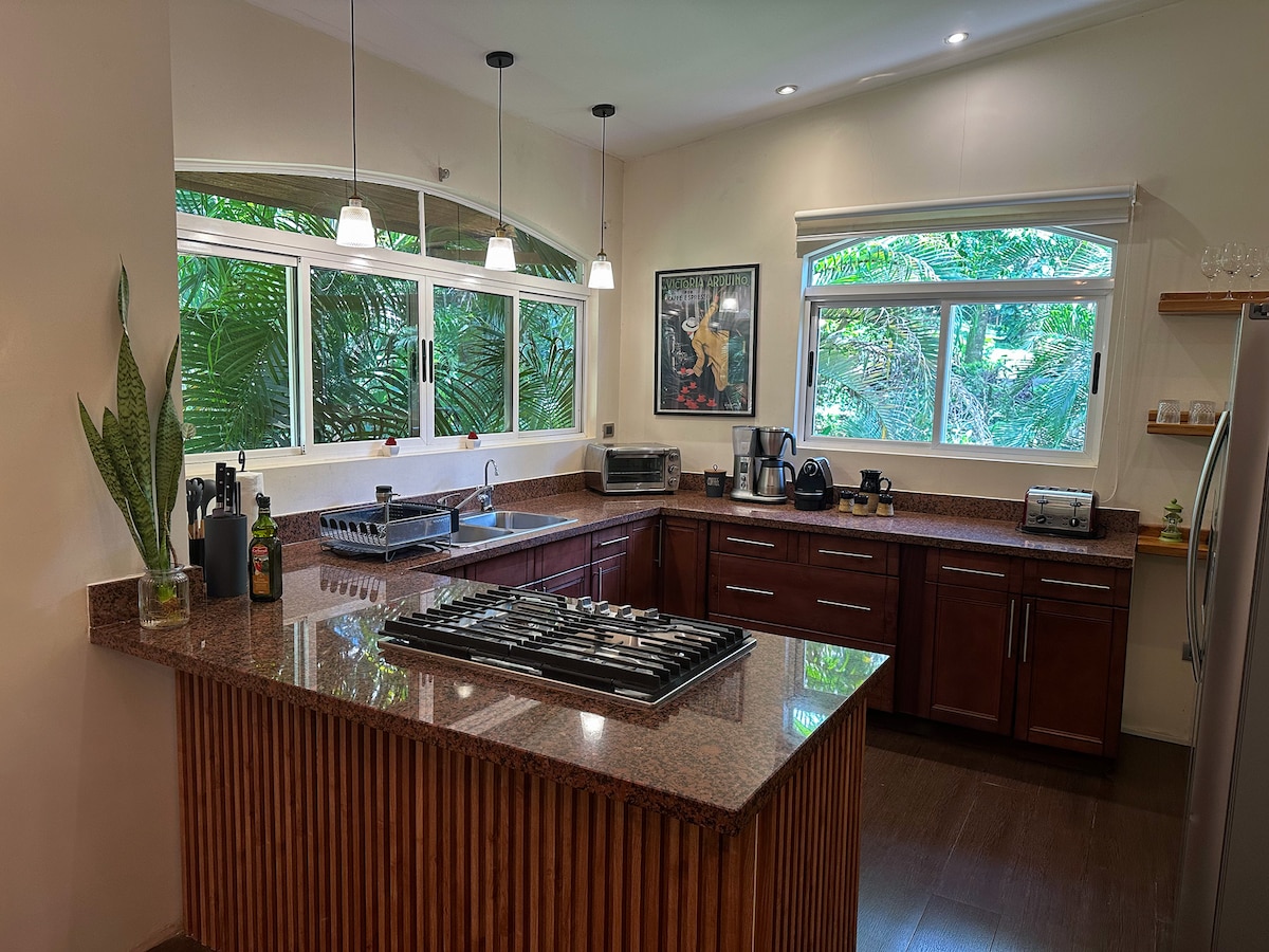 LA CASA DE ROCA es una casa de estilo contemporáneo con VISTAS EXQUISITAS DEL PACÍFICO. Esta casa de dos pisos se encuentra en una propiedad de 3 acres en la ladera rodeada por la selva que proporciona un telón de fondo muy PRIVADO y TRANQUILO para su escapada tropical. Con hermosos elementos de diseño interior/exterior y a pocos pasos de la PISCINA INFINITA, la casa cuenta con una amplia cocina, comedor, sala de estar y baño en el primer nivel y DOS SUITES PRINCIPALES con baños privados y un balcón en el piso de arriba.