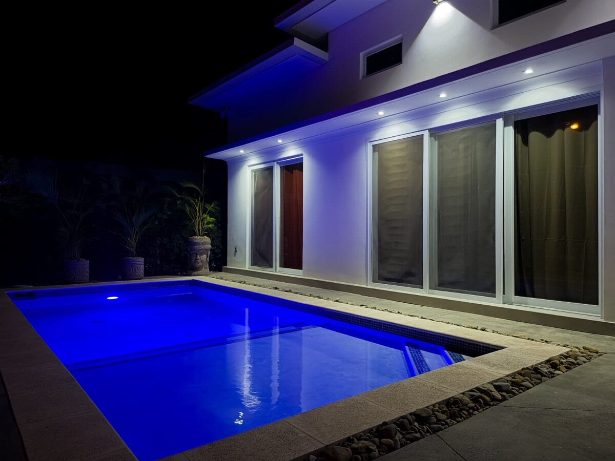 Casa limpia y luminosa ubicada en San Juan del Sur enclavada entre exuberantes árboles tropicales. A sólo 5 minutos a pie de la playa y 10 - 15 minutos a pie de la ciudad a lo largo de la playa. Cerca de la acción pero lo suficientemente lejos para un sueño tranquilo. La casa es un oasis donde puedes volver después de un día de exploración para tomar una copa de vino en el patio, nadar en la piscina, comer en el patio abierto de la azotea, relajarte en la hamaca o simplemente ver una película.