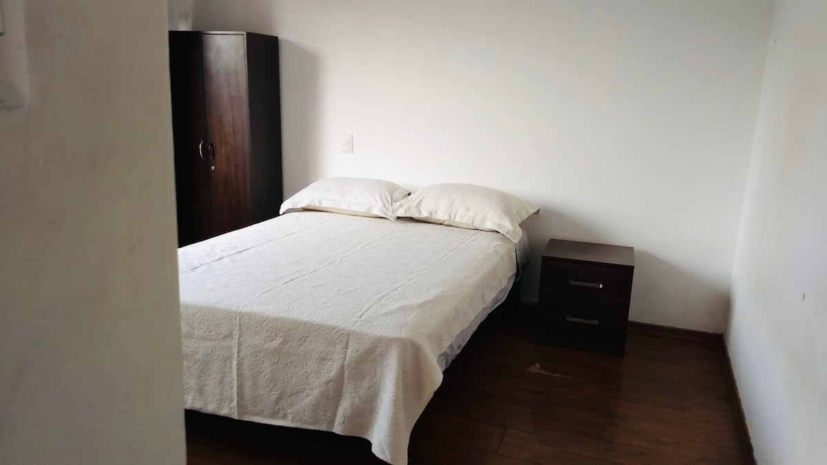 Habit.independiente c/baño privado, a 5 Min. del tren Est. Atocongo. Si no encuentras libre esta habitación para las fechas q requieres, puedes buscar en mis otros anuncios, tengo otras 2 con las mismas características. A la espalda hay un mall y pasan los buses del Transp. público. La Habit.está en el 5° piso de un Edif.ubicado frente al parque, tiene amplias ventanas, cama matrimonial, refri, tv 32", wifi, netflix, ducha con agua caliente, hervidor de agua, lavadora, parqueo delante del Edif.
