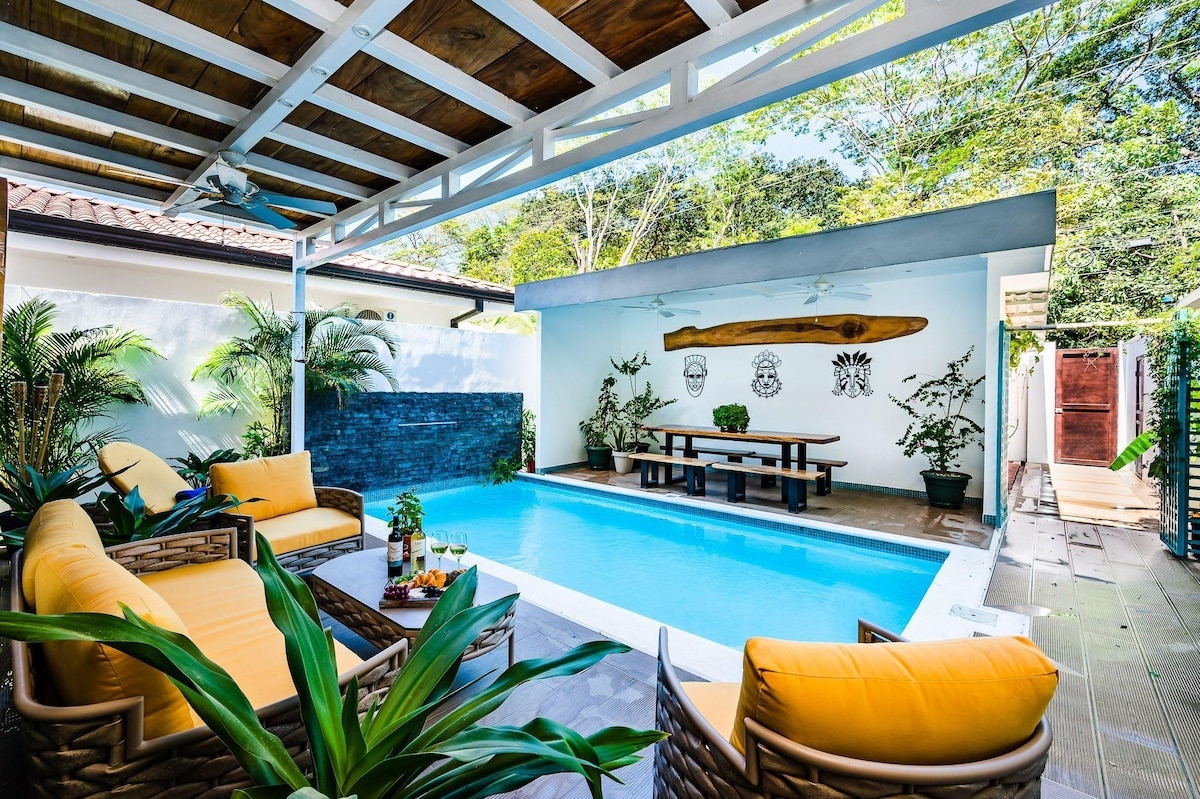 Disminuye la velocidad de tu vida en nuestra villa costarricense, nuestra moderna casa de 4 dormitorios tiene todo lo que necesitas para tu viaje a Costa Rica. La unidad viene con aire acondicionado, wifi, altavoces bluetooth alrededor de la casa, piscina y parrilla. Durante tu estancia, también puedes disfrutar de una cómoda cocina, terraza, bar y sala de estar. Nuestra villa está a poca distancia a pie de varias playas (Potrero, Penca), restaurantes populares, supermercados y a 35 minutos en auto del ajetreado Tamarindo. Una base ideal para explorar Costa Rica.