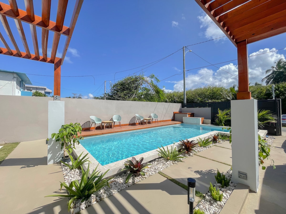 OASIS VILLAGE , Bienvenidos a nuestro paraíso, un lugar único y maravilloso diseñado para disfrutar momentos inolvidables junto a nuestros seres queridos. Ubicado en Vega Baja, a solo 4 minutos de la playa Puerto Nuevo. Contamos con un espacioso patio para el disfrute de la naturaleza, una hermosa piscina rodeada de luces nocturnas y fogata al aire . Contamos con 2 casas cada una con capacidad para 6 personas , completamente amuebladas y equipada Completamente privado. Todo el espacio es suyo