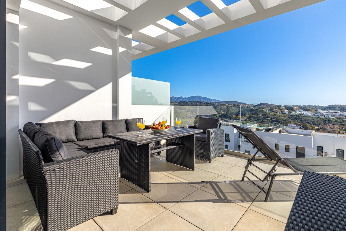 Apartamento único con vistas impresionantes, piscina y golf
