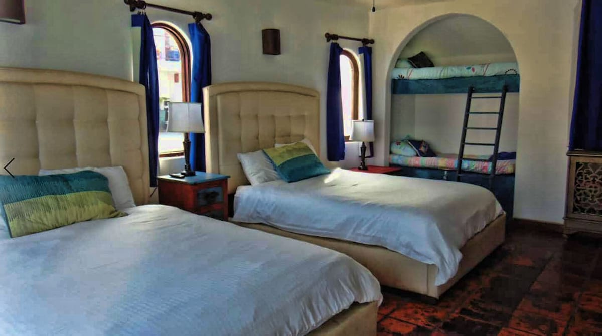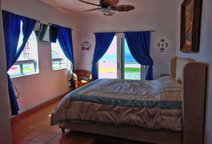 Esta propiedad única a 20 millas al sur de Rosarito se encuentra en la costa de Baja California, dentro de una de las principales comunidades cerradas del área. A solo 1 milla al norte de Villas Paraíso, la casa de playa de 4 pisos ofrece 3 suites de invitados separadas en el primer piso justo al lado de una cocina/patio al aire libre con una gran fuente de azulejos azules (¡enorme!). La Blue Casita incluye TV vía satélite, ventilador de techo, aire acondicionado, teléfono, radio, baño privado y zona de cocina. Para disfrutar de las vistas al mar y un salón, los huéspedes toman el ascensor hasta el cuarto piso.