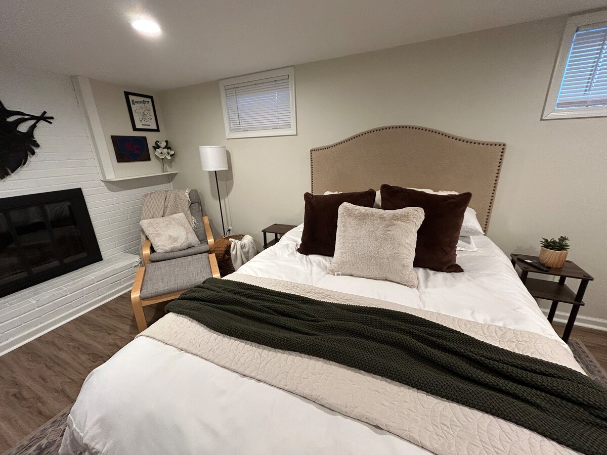 Cozy 1-Queen Bedroom Studio in a Peaceful Neighborhood – Perfect for Your KC Getaway! Escape to this charming, ground-floor studio located in a serene, well-established neighborhood—an ideal retreat for both business and leisure travelers. This cozy 1-bedroom, 1-bathroom unit is designed for comfort and convenience, featuring a washer and dryer and one assigned parking spot right at your doorstep. Our studio is pet-friendly, so you can bring your pet along to enjoy your stay in KC.