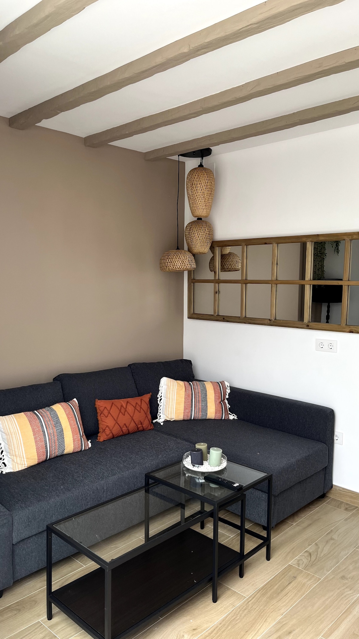 Cozy and very bright apartment, pleasantly invading its natural light through every corner through large balconies connected to the outside with views of the San Bernardo Bridge.Its decoration is marked by its high Catalan vaulted ceilings that combine the essence of the old with an elegant and modern style. It has two large bedrooms, two bathrooms, a fully equipped designer kitchen with a quick breakfast area integrated into the living-dining room, creating an open space.You will feel at home!