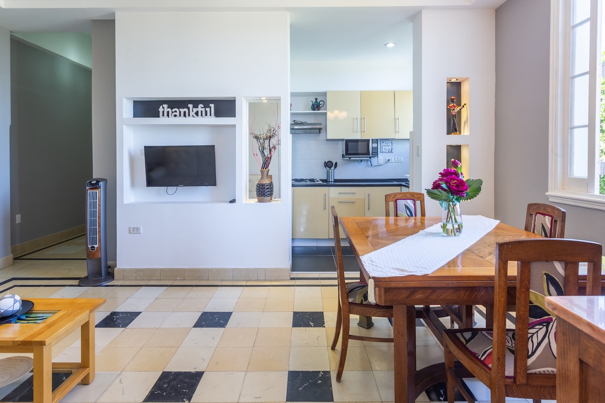 Nuestro Apartamento tiene mucha luz natural y además de todas las comodidades, puedes disfrutar de hermosas vistas hacia el mar. El apartamento cuenta con todo lo necesario para que pases una estancia comoda y agradable, se encuentra en un hermoso lugar, seguro y con muchos lugares de interes. Tiene un balcon donde usted podra disfrutar unas bellas vistas. En nustro apartamento puedes recibir amigos y disfrutar de un buen ron y habano. le brindamos internet las 24h gratis dentro del apartamento.