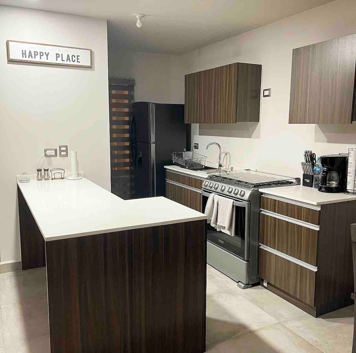 Disfruta de una experiencia con estilo en este alojamiento ubicado a 10 min del cruce internacional en auto, a 10 min de la zona turística caminando. Con vistas al centro de Tijuana. Cercano a cafés y restaurantes de la zona. Cómodo y seguro para caminar, con seguridad interna las 24 horas. El departamento cuenta con dos balcones y excelente iluminación, ventanas de piso a techo con persianas blackout para más control de la iluminación.