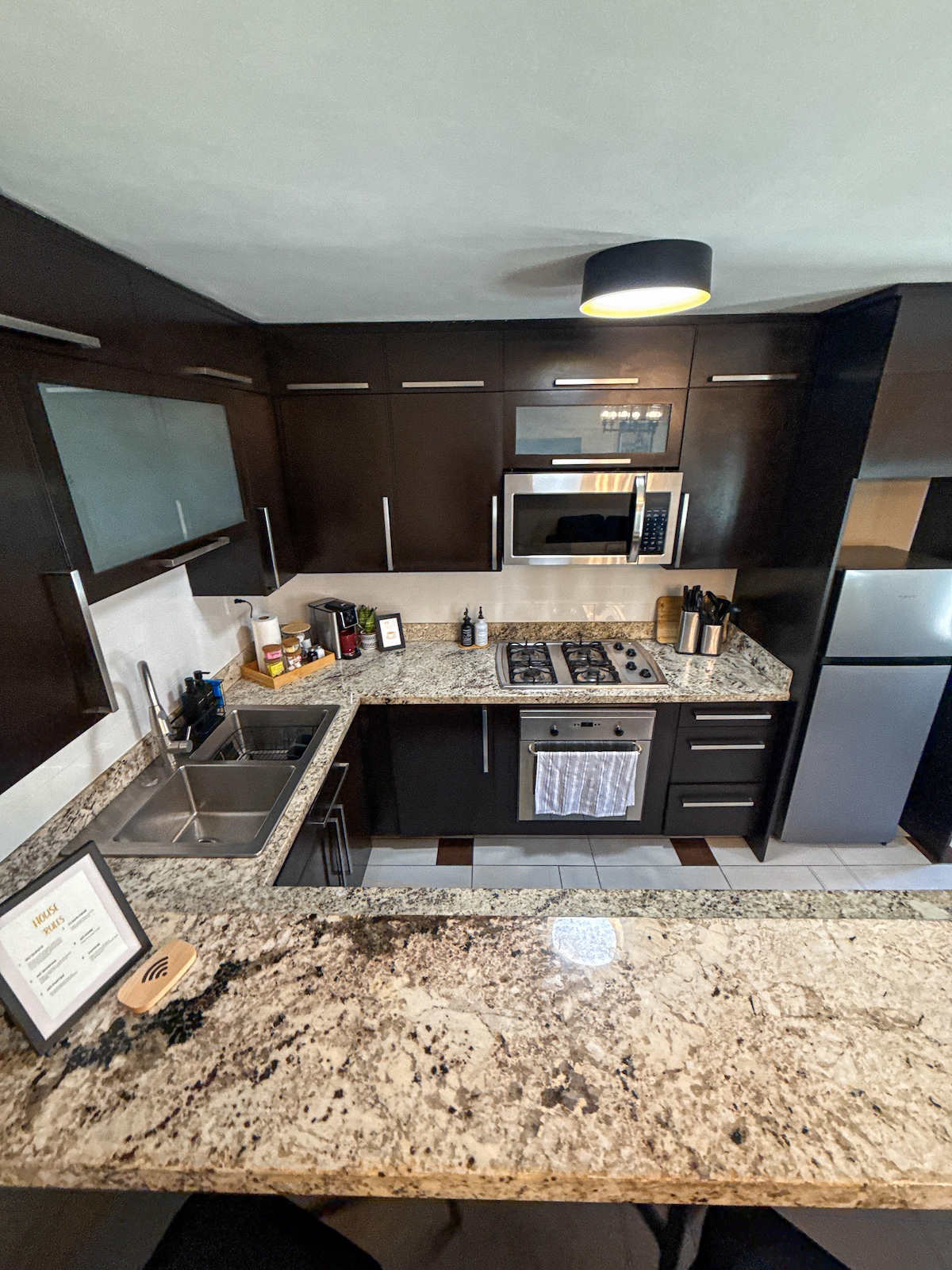 Este alojamiento tiene un estilo único propio. Es totalmente negro, lo que lo hace ideal para relajarse y disfrutar de tus películas/series favoritas. Colchón tamaño king y TV de 75pulgadas *AC/Calefacción *Wifi rápido *Todo en las fotos es totalmente PRIVADO Disfruta de la hermosa puesta de sol desde nuestra bañera para dos personas y terraza (¡la mejor vista de la zona!)🌅 Cocina al aire libre🍳/ ¡Sala de estar con fogata y cine! 🎥 Ubicado dentro de un residencial cerrado (seguridad 24/7) A poca distancia a pie de bares, restaurantes y playa de Malibú(~1 milla)