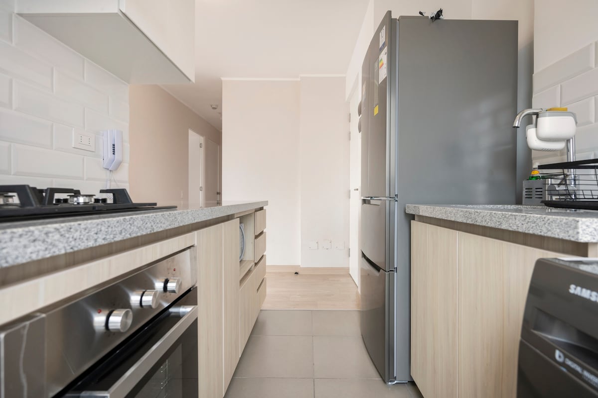 Dpto moderno full amoblado, ideal para largas estancias. Cuenta con Wi-Fi de alta velocidad, Smart TV 65” con Netflix y Disney+, cocina totalmente equipada con cafetera espresso, filtro de agua, lavaseca, cama dos plazas rosen y balcón. Edificio con piscina, coworking y gym. Autocheck-in 24/7, smartkey, estacionamiento gratuito y seguridad 24h. Ubicación estratégica en San Miguel, cerca de universidades, centros comerciales y a menos de 20 min del aeropuerto.