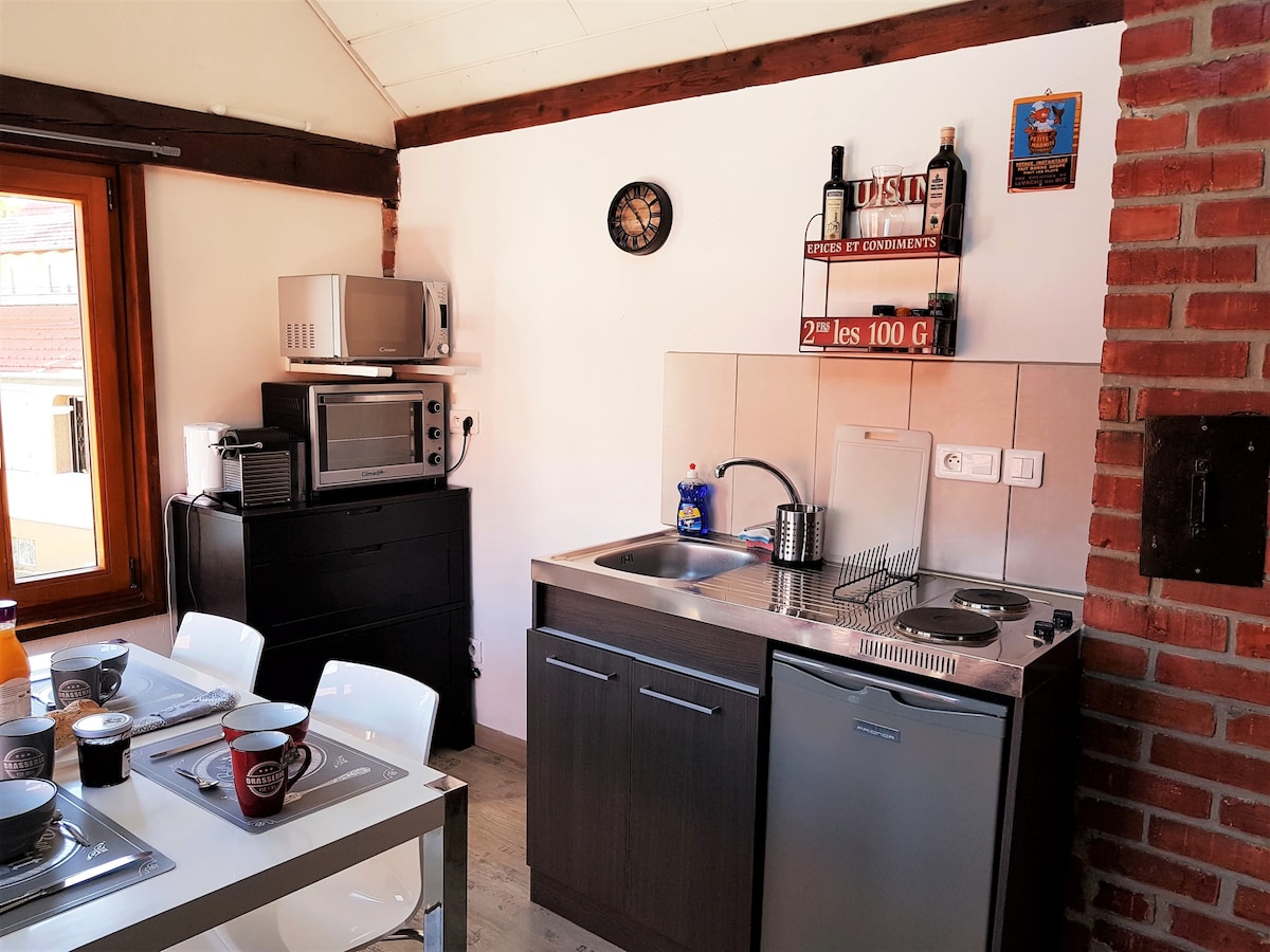 2/3 habitaciones en una parte independiente de 50 m2 de una casa alsaciana totalmente renovada. Con la etiqueta 2* Jardín privado de 50 m² + terraza privada con zona de comedor. Entrada independiente, espacio para bicicletas. Dormitorio (cama de 160), baño con ducha, aseo separado, cocina abierta equipada, sala de estar con sofá cama (140) con puertas correderas, aire acondicionado reversible. A 15 minutos al sur de Estrasburgo Autobús a 10 metros que da acceso al tranvía (centro de la ciudad a 20 minutos en transporte público), Alemania a 5 minutos (Europapark 31 km)