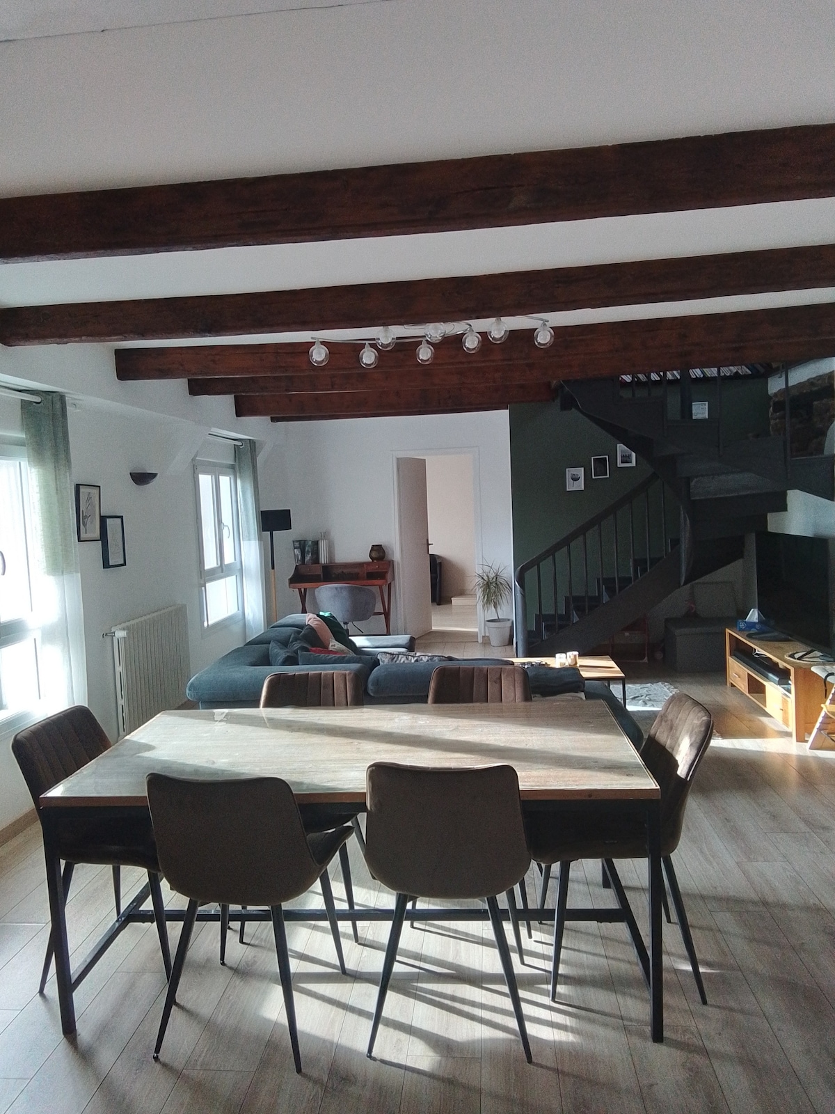apartamento(solo)centro de la ciudad(2 a 8 personas), 120 m2, baños: 2(ducha y bañera); 2 aseos.cocina totalmente equipada , 2 pantallas planas,cafetera y dolce gusto. A 3 km del mar. TV de pantalla plana de 140 cm SÁBANAS Y TOALLAS NO SUMINISTRADAS El paquete de limpieza está incluido en la tarifa global de la estadía. 4 habitaciones: 1: 1 cama de 160 +cuna 2: 1 cama 140+1 cama 90 3: 1 cama 140 4: 1 cama 120 1 cama plegable 90 silla alta Estacionamiento público frente al apartamento
