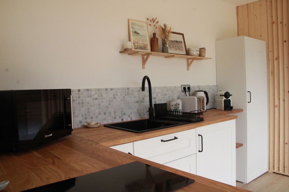 ¿Le apetece una estancia entre el mar y la naturaleza? Descubra nuestra casa T2 de 33 m², ideal para una escapada relajante en pareja, en familia o con amigos. 🏡 La casa • Habitación con cama doble + sofá cama de 1 plaza • Sala de estar con sofá cama de dos plazas • Cuna y trona • Cocina equipada • Baño 🛏️ Comodidad incluida • Se proporcionan sábanas y toallas • Cafetera Tassimo con algunas cápsulas de cortesía, • Bolsitas de té y pasteles a su llegada ☕🍪