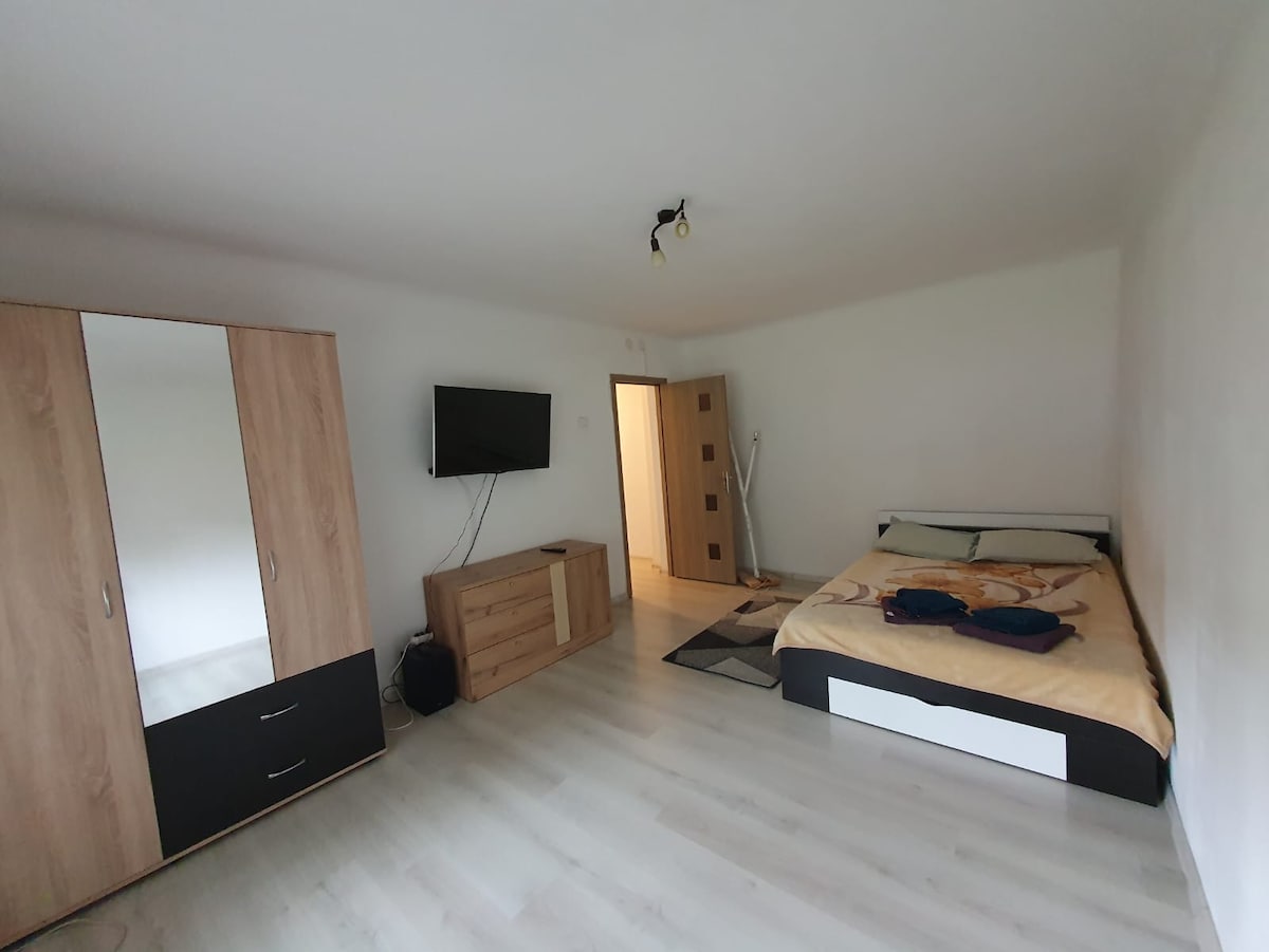 Our renovated studio is in the Rovine area of Craiova — a quiet spot with fast access to the city center. Ideal for business trips or city breaks. Enjoy: – Fast WiFi – Smart TV – Cozy double bed – Equipped kitchen – Modern bath with walk-in shower – Towels & toiletries Free street parking nearby. Close to shops, restaurants & public transport. We look forward to hosting you!